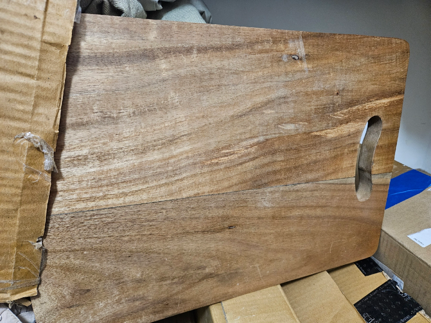 Selling a wooden cutting board. It's in good condition and ready for a new home. Perfect for any kitchen!