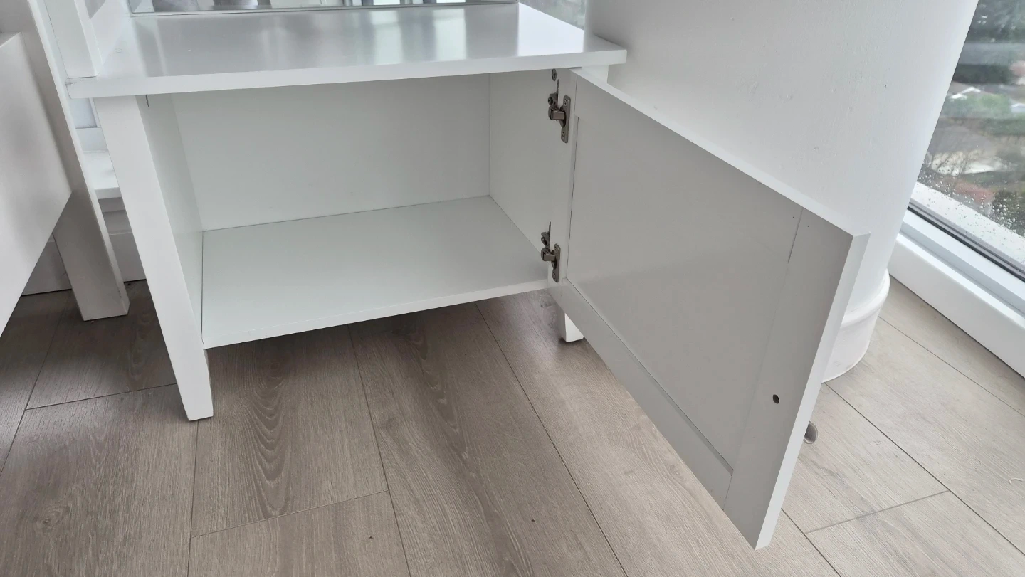 Selling a beautiful white full-length standing mirror with a built-in storage cabinet and convenient side knobs for hanging bags, scarves, hats, or accessories. Perfect for bedrooms, closets, entryways, or compact spaces.