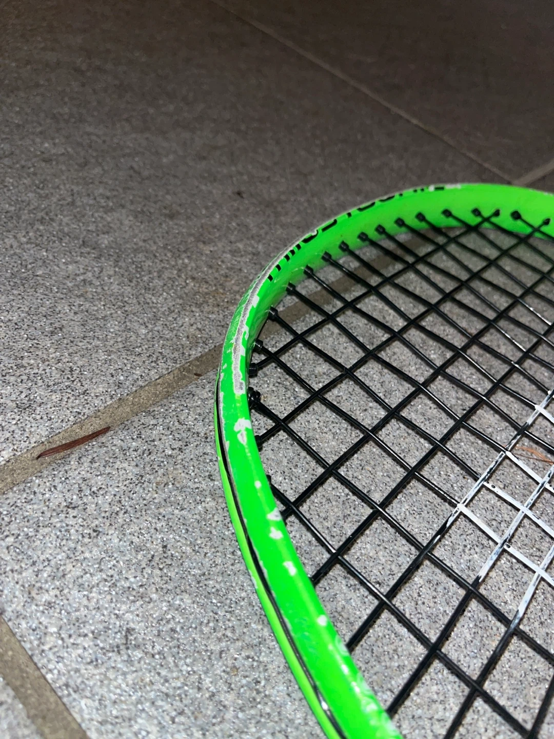 Selling a Wilson Milos 25 junior tennis racquet. It's in used condition with some wear and tear, as shown in the pictures. Perfect for young players learning the game! Has scratches near top but no physical damage!