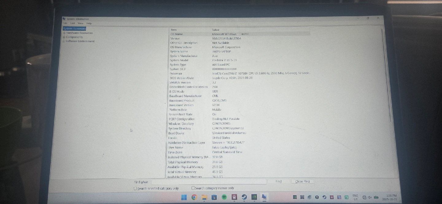 Acer Predator Helios 300 Model:Predator PH315-53 Comes With Game Sir Xbox Controller Cpu: i7 10-750H @2.6 Ghz Ram: 32gb Max For This Laptop Storage: 1tb Boot Drive 2tb Game Drive Gpu: RTX 2060 Os: Windows 11 Home Everything Works as it should Factory Reset and is ready to go for new owner also has newest Updates Price is Negotiable