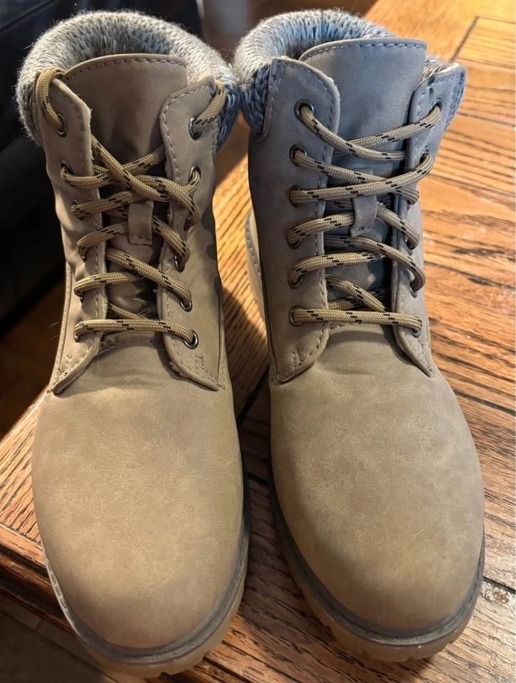 Brand new, never worn Ardene hiking boots. Labelled as size 9, but seem to fit more like an 8.5. They have nice thick soles and a warm cuff. Made of faux suede. Cash or e-transfer accepted.