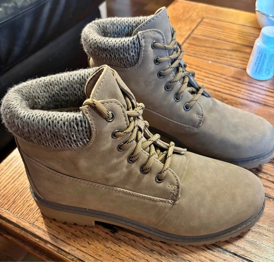 Brand new, never worn Ardene hiking boots. Labelled as size 9, but seem to fit more like an 8.5. They have nice thick soles and a warm cuff. Made of faux suede. Cash or e-transfer accepted.