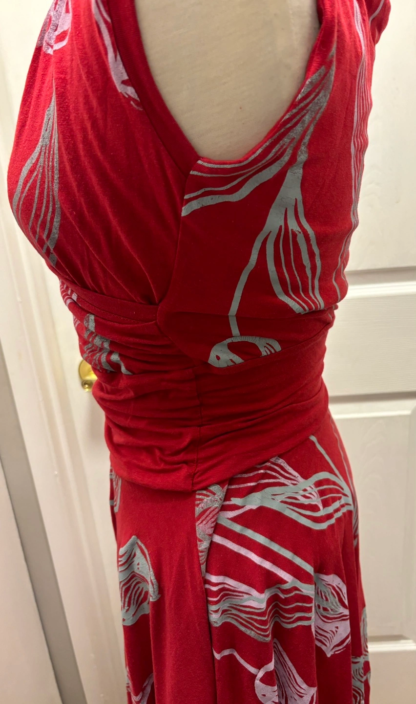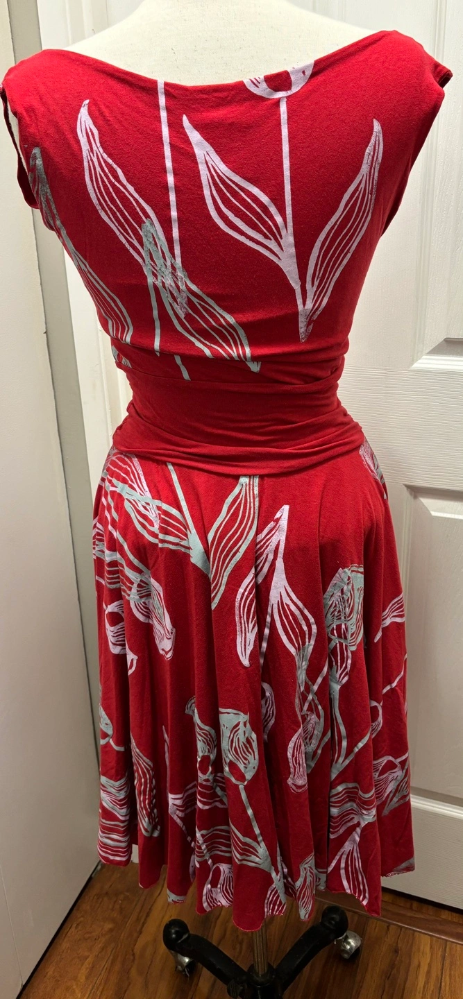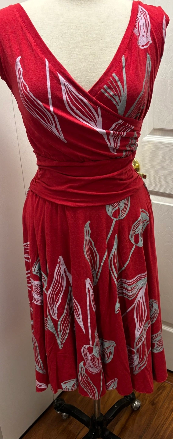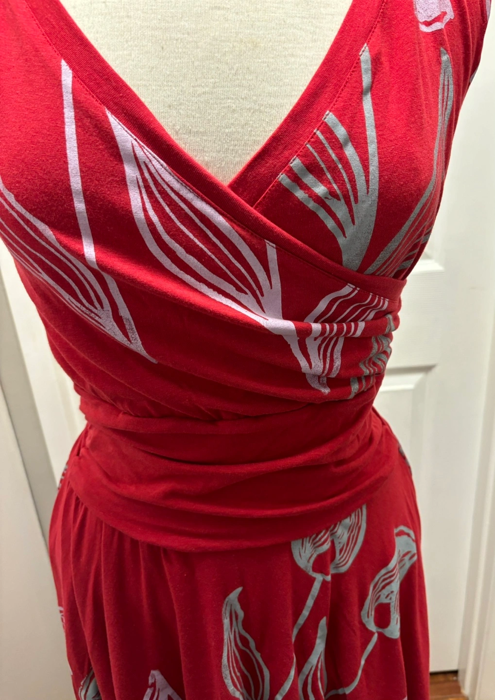 Lilikoi Red Wrap Bodice Dress, Size Medium, Made in Canada