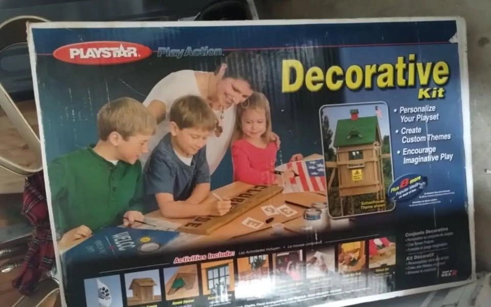 Transform Your Children's Swing Set! New and Exclusive Decorative Kit allows you to Personalize your Play Set, Create Custom Themes and Encourage Imaginative Play. Includes: Decorate-A-Flag, Magnetic Chalkboard, Accent Dormer, Sunlight Window, Stencil Set,