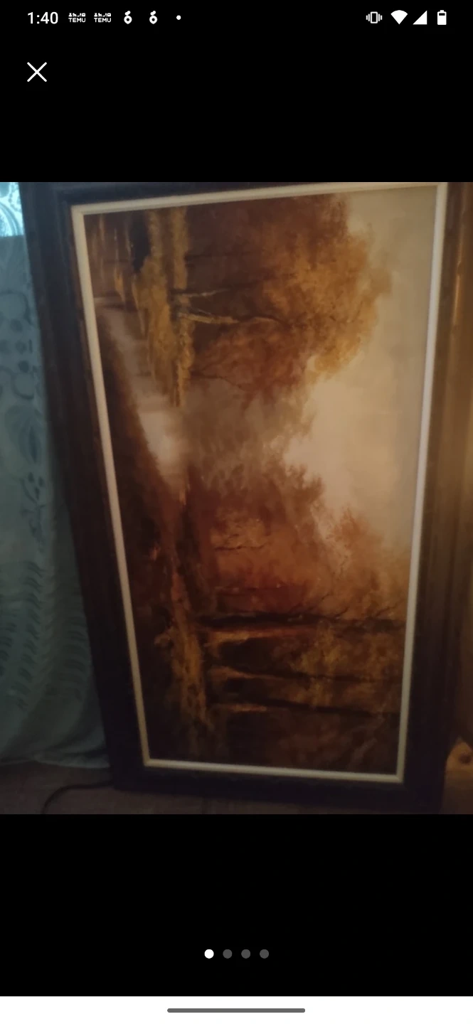 This is a very nice oil painting depicting an autumn forest scene. The painting is in a dark wood frame. It adds a warm, natural touch to any room.