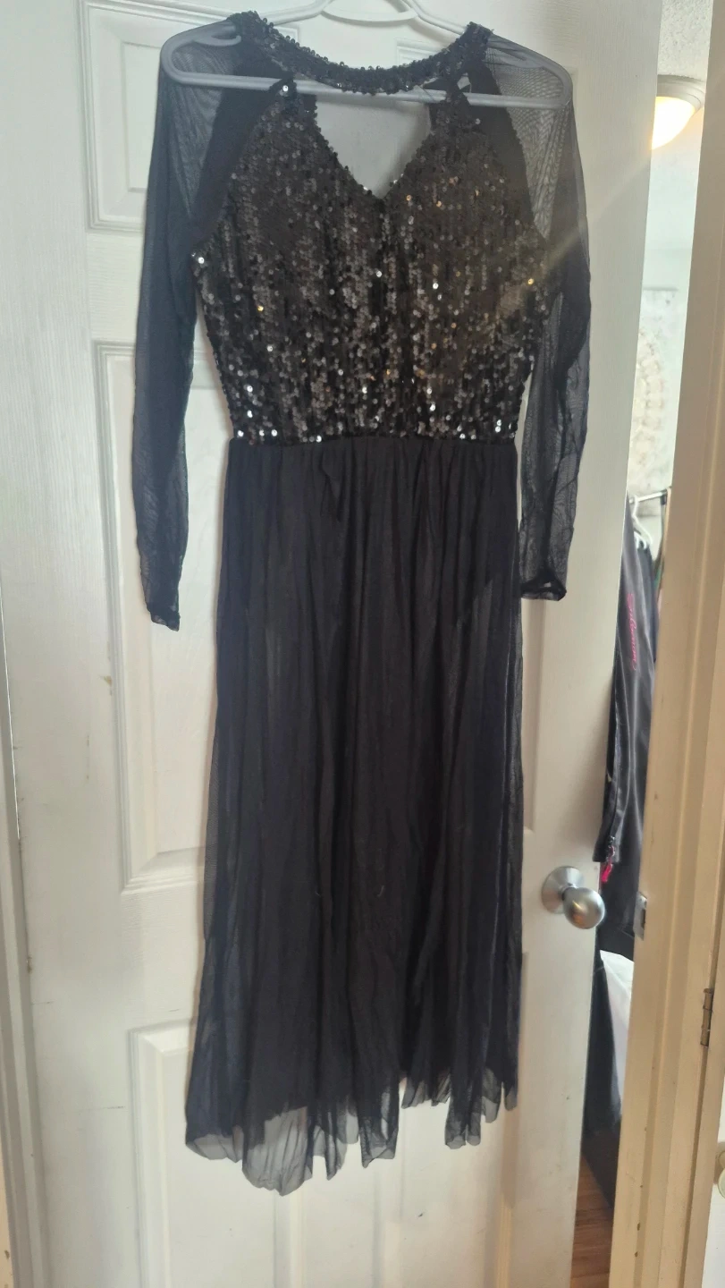 Buy & SellDASDO Black Sequin and Mesh DressDASDO Black Sequin and Mesh Dress$26Sparkly black sequin bodice with long mesh sleeves and a flowing sheer skirt. It features a keyhole neckline. Perfect for a special dance costume ConditionNewSizelargeWHERE TO MEETCheck LocationView MapSELLERverifiedMichBraeside892 reviews0 chats·0 favorites·5 viewsSEND CHAT TO SELLERHi Mich! I’m interested in your listing.Hi Mich! I’m interested in your listing.Get the Karrot app to chatSign In to chat