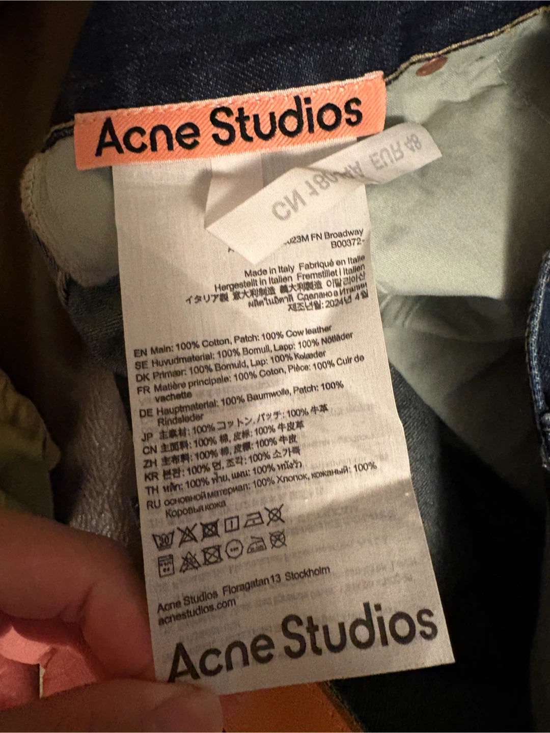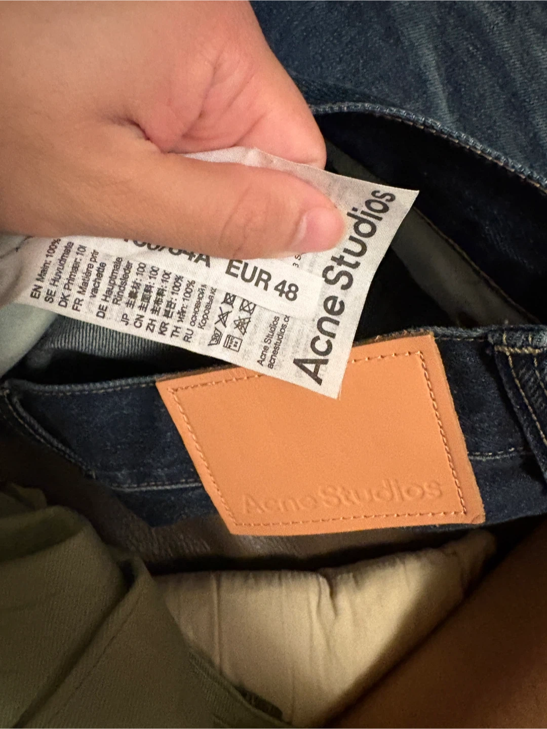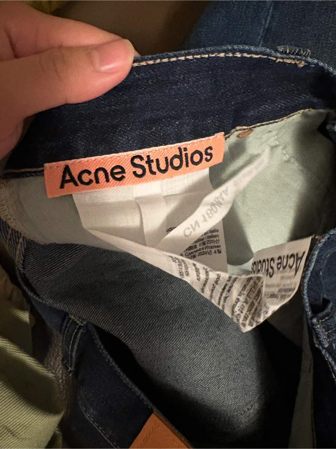 20Selling a pair of Acne Studios 2023m wide leg baggyjeans. They're made of 100% cotton and 100% cow leather. Stylish and comfortable! New only tried on