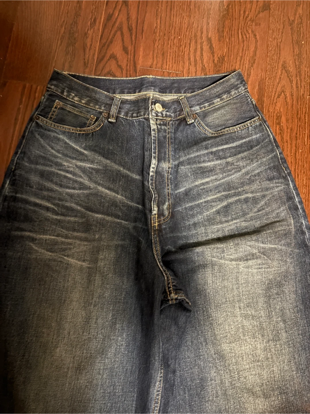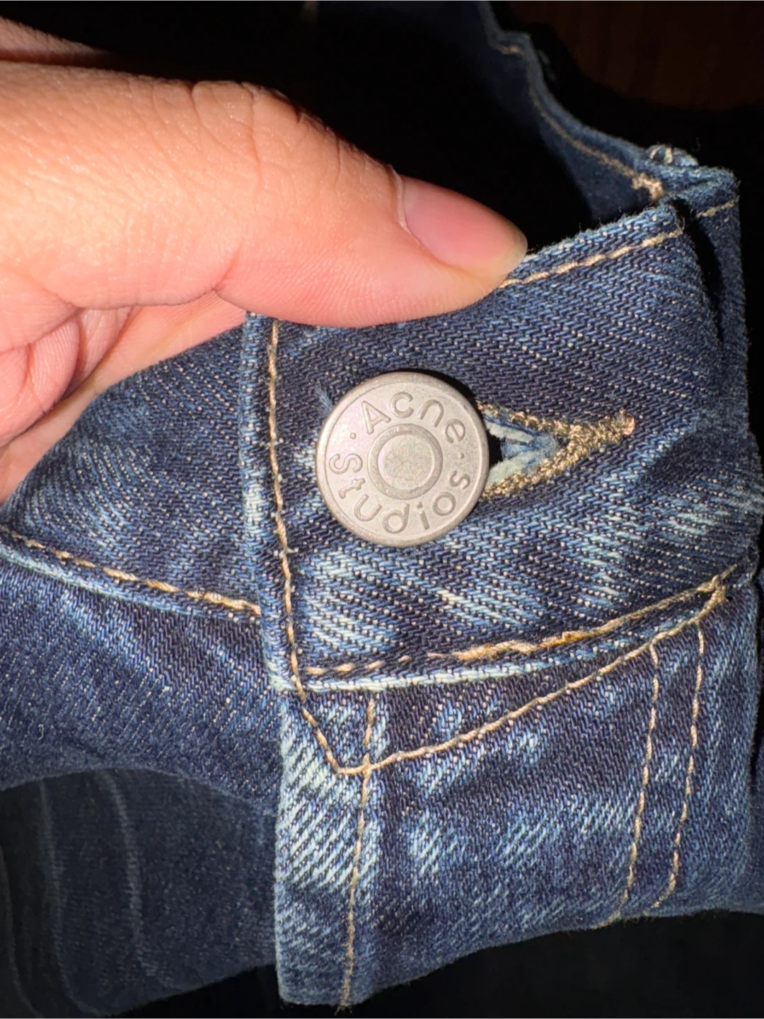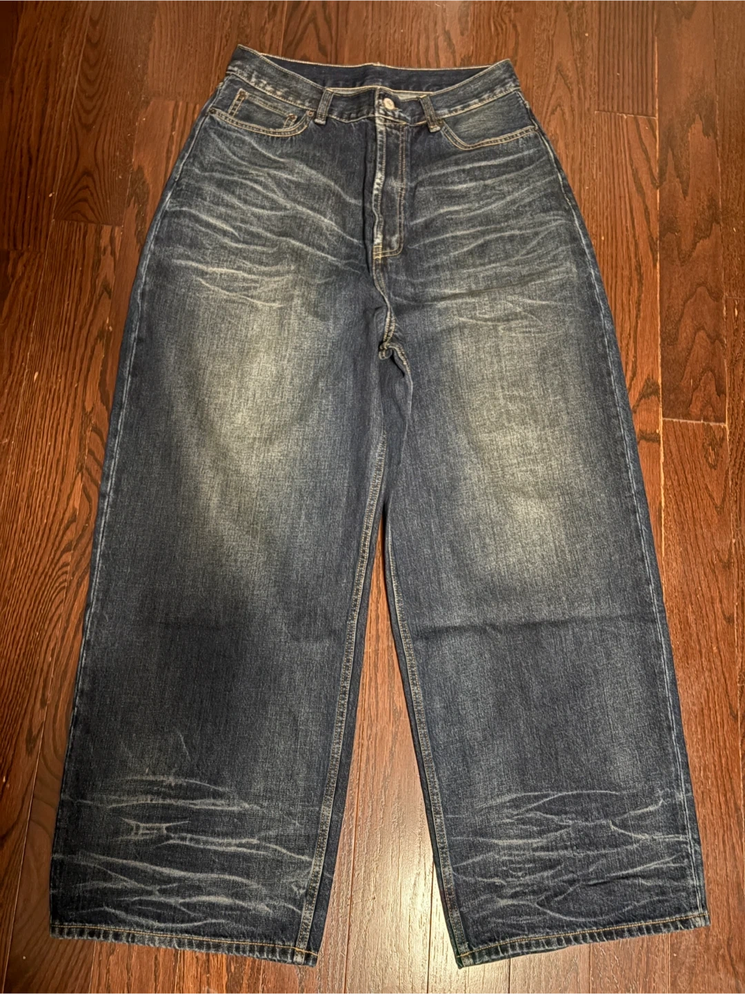 20Selling a pair of Acne Studios 2023m wide leg baggyjeans. They're made of 100% cotton and 100% cow leather. Stylish and comfortable! New only tried on