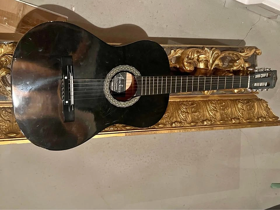 15Selling a Black Academy acoustic guitar in very good condition. It plays well, stays in tune, and has a rich, warm sound. Perfect for beginners, casual players, or anyone looking for a reliable practice guitar. ✔️ Details: Classic black finish Comfortable neck, easy to play No cracks or major scratches All strings intact and playable Great for learning or everyday use Ready to go and easy to tune just pick it up and play! 📍 Pickup available! 💬 Message me if you have any questions!