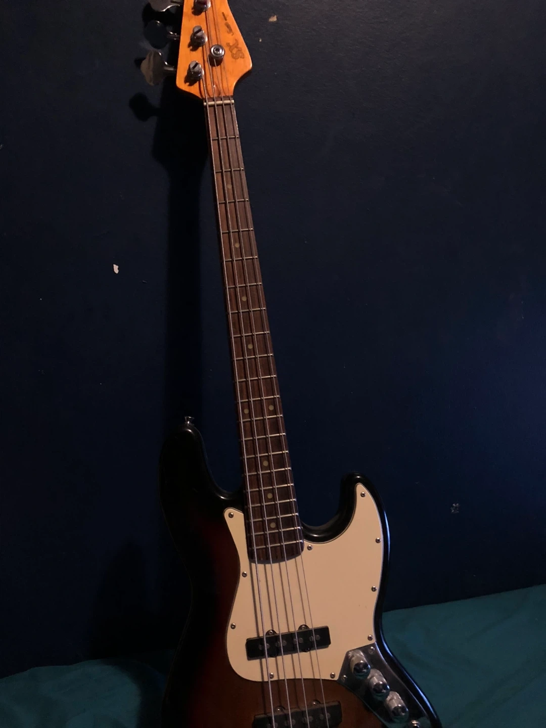 I'm selling both an acoustic and electric bass guitar. Both are in okay shape. One of them is missing a string (the second image)— my uncle gave me these but I don’t play guitars so I just decided to sell them. Please give me an offer and I’ll think about it.