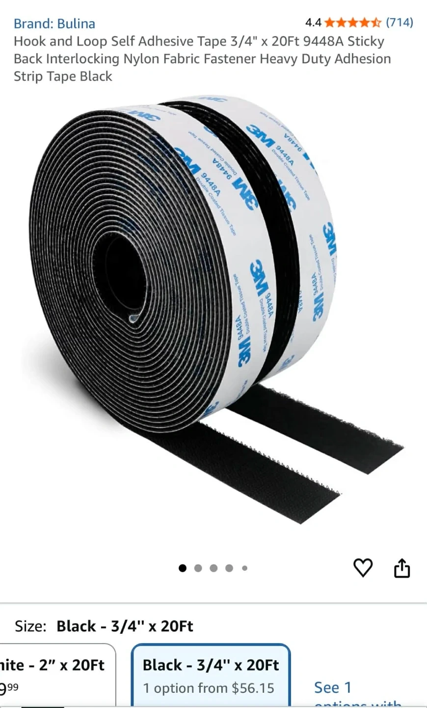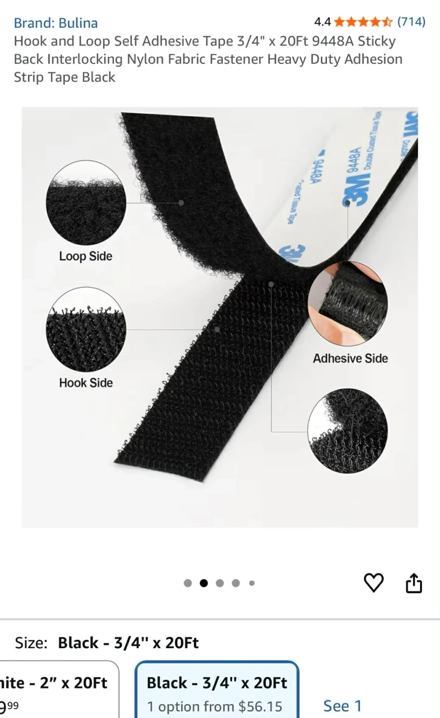 Hook and Loop Self Adhesive Tape 3/4" x 20Ft 9448A Sticky Back Interlocking Nylon Fabric Fastener Heavy Duty Adhesion Strip Tape Black