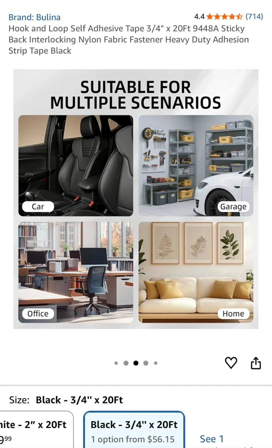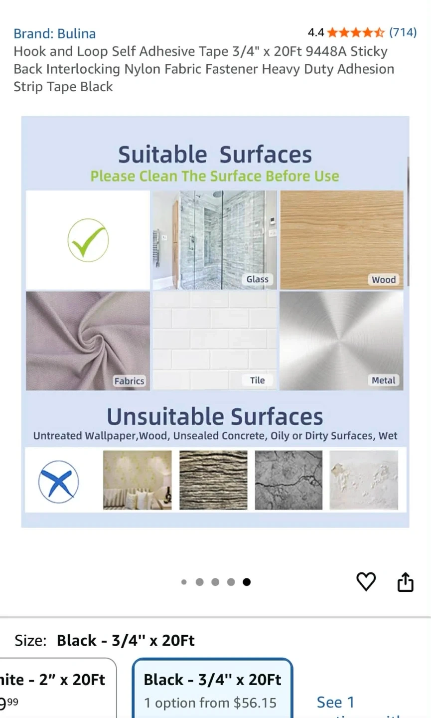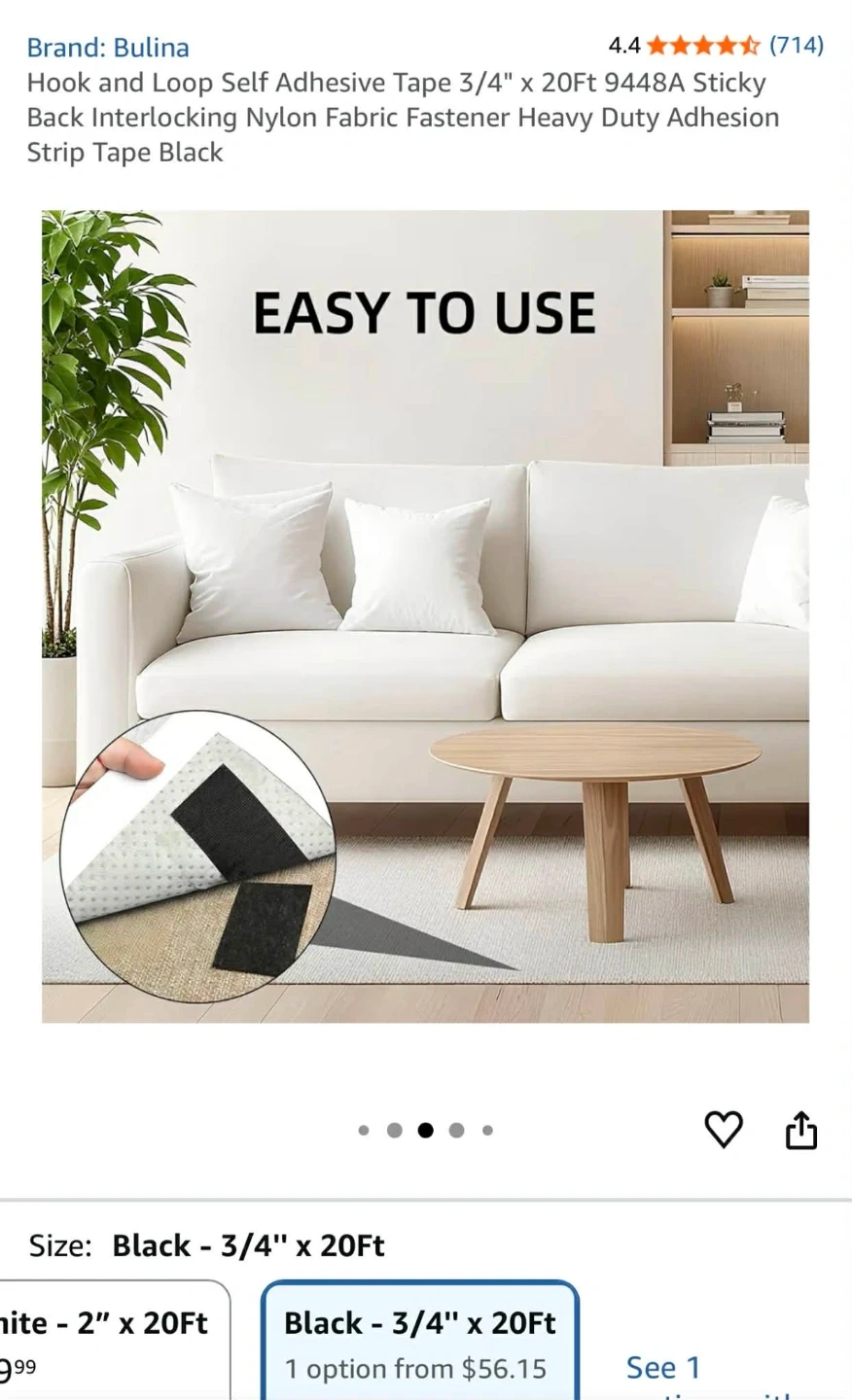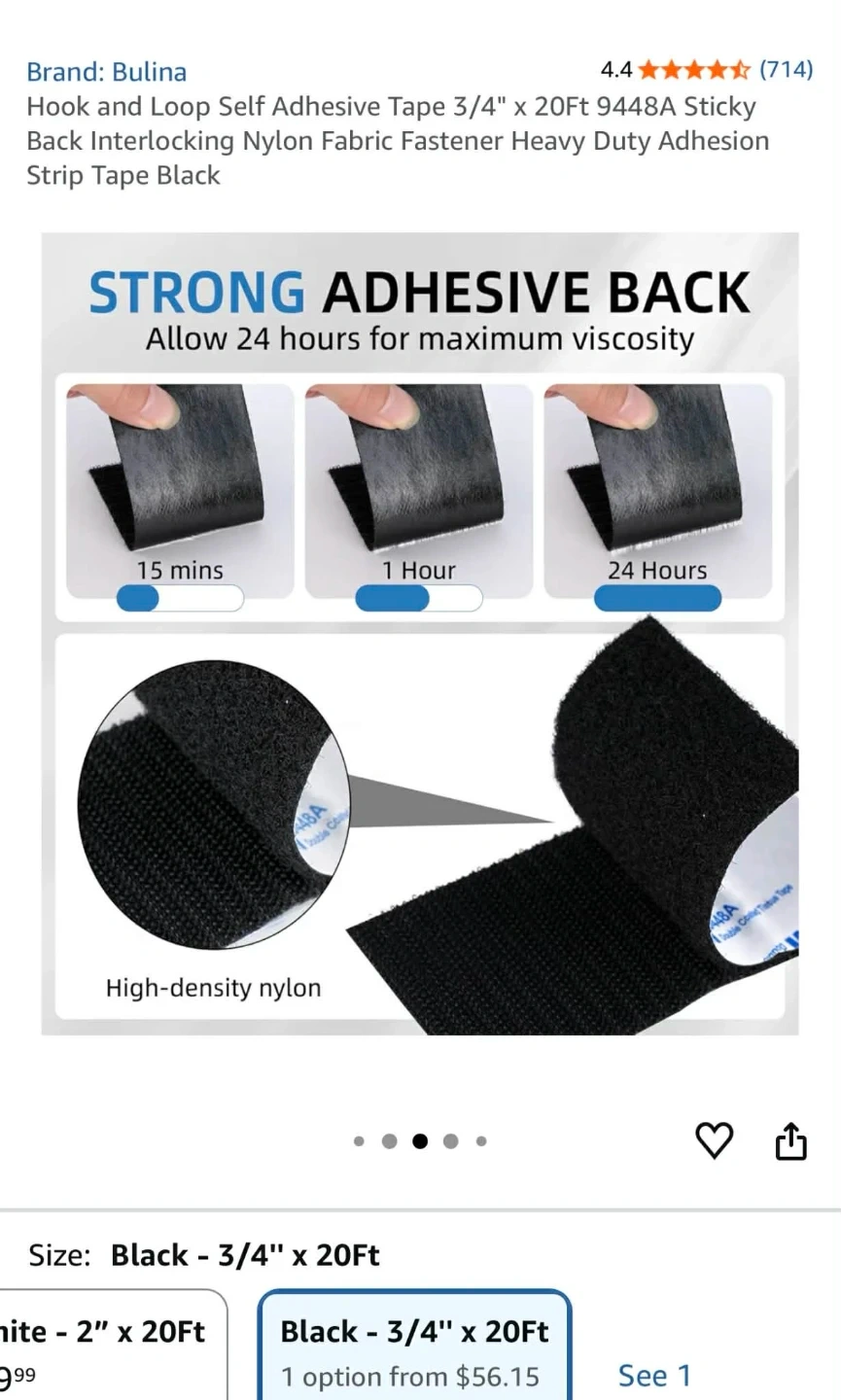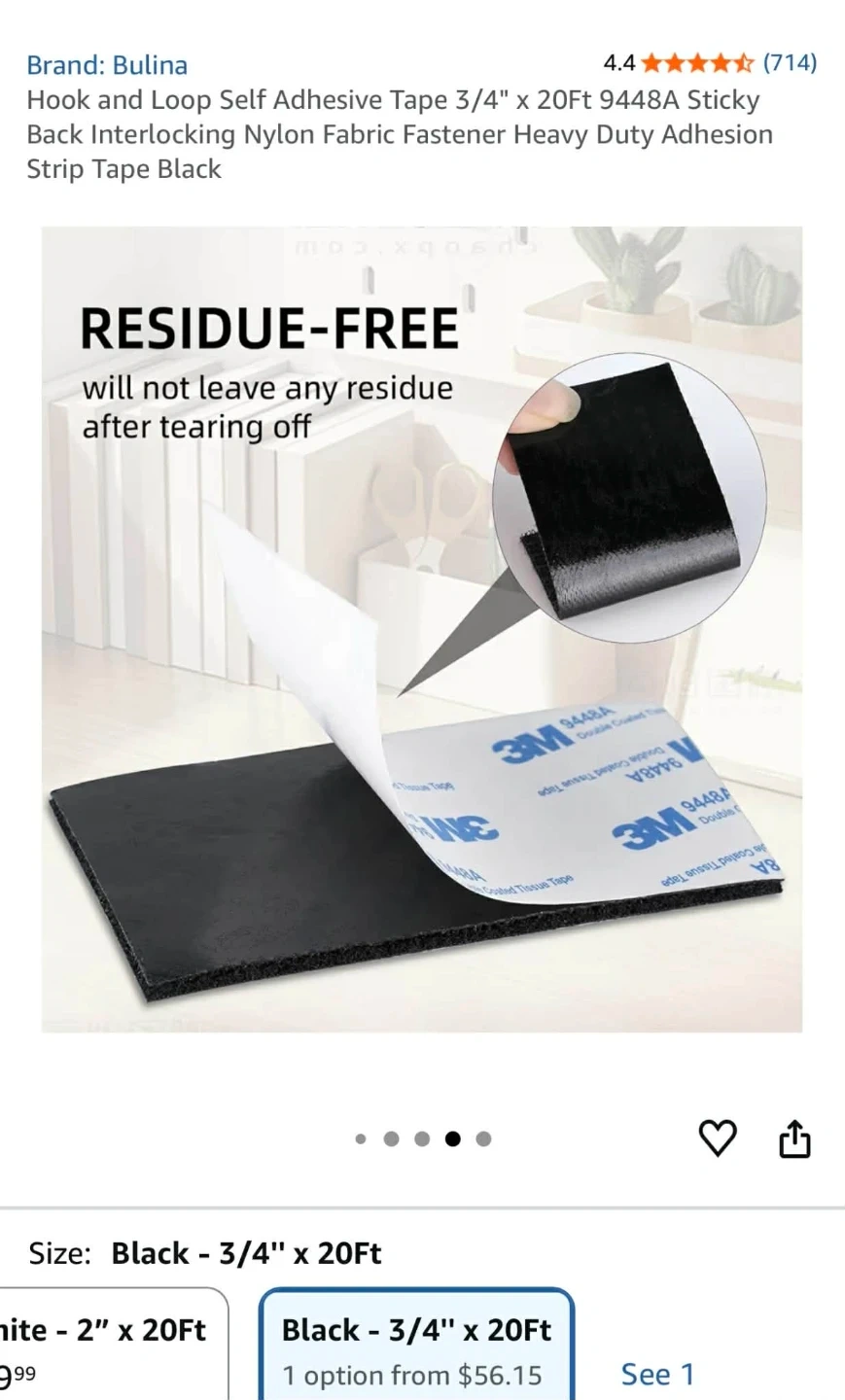 Hook and Loop Self Adhesive Tape 3/4" x 20Ft 9448A Sticky Back Interlocking Nylon Fabric Fastener Heavy Duty Adhesion Strip Tape Black