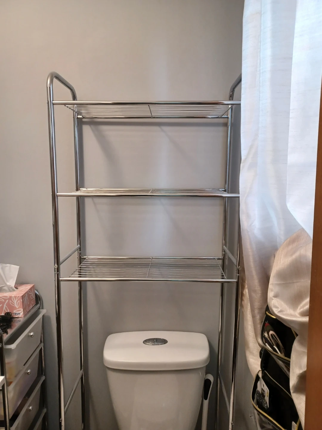 This Era shelving unit is designed to save space. It features three tiers of chrome shelving, perfect for organizing bathroom essentials. Easy to assemble over your toilet.