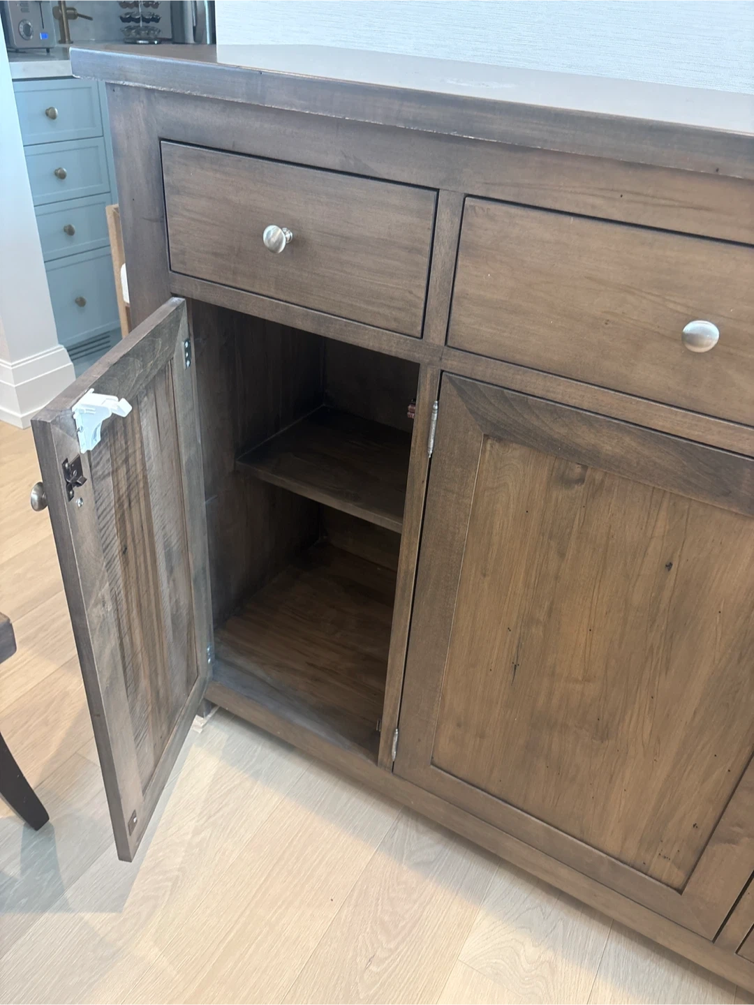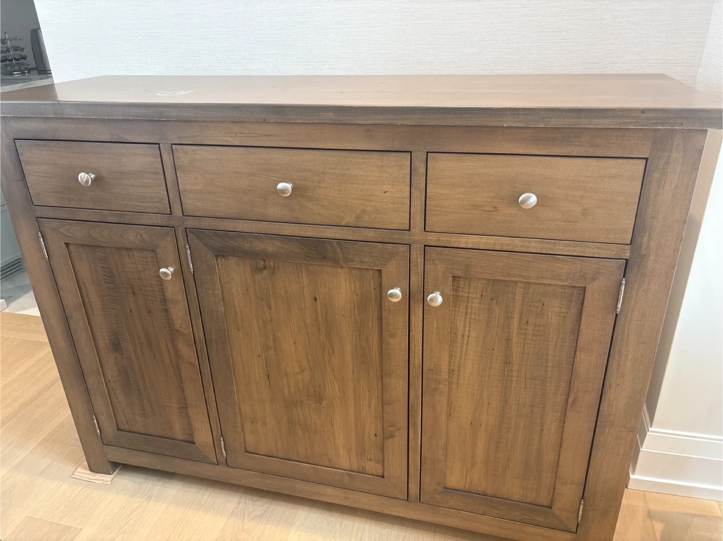 Solid wood sideboard cabinet in excellent structural condition.