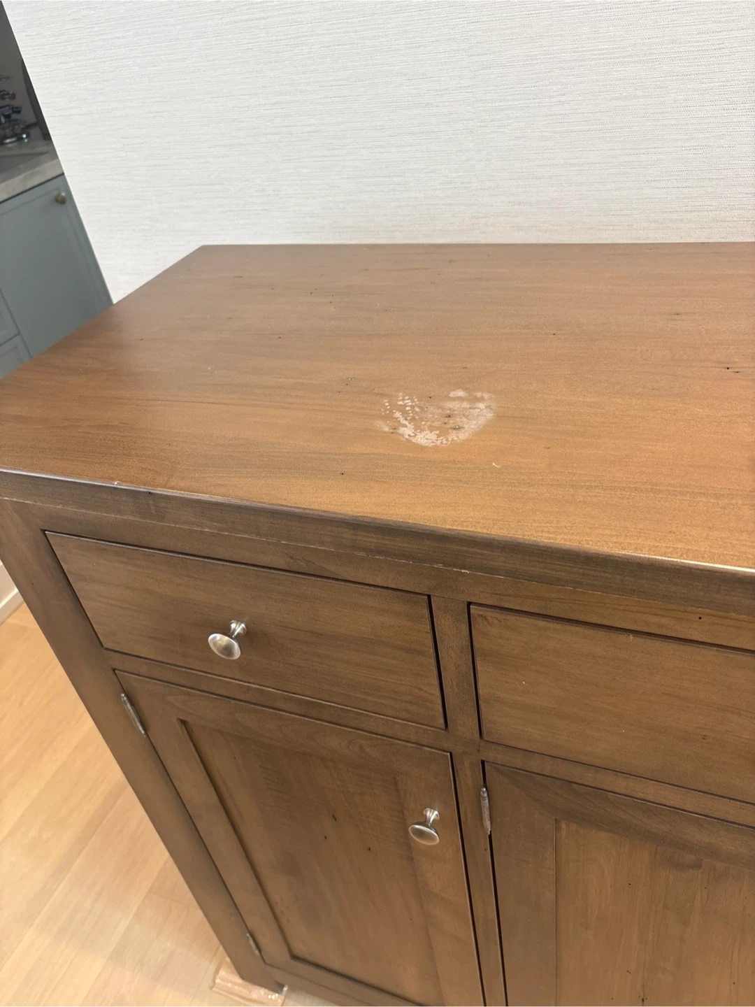 Minor heat mark on the top surface (about the size of the base of a drinking glass). Priced accordingly.