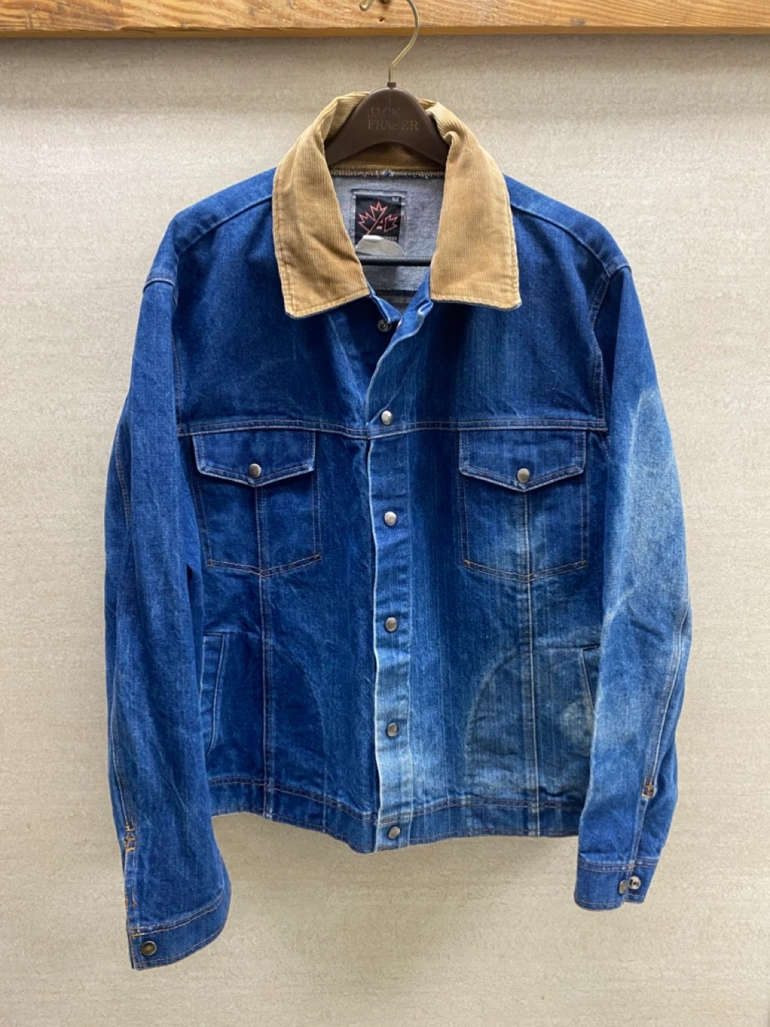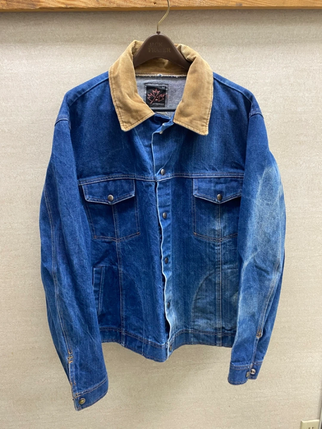 102Vintage Action West 80’s Denim Jacket w/ Corduroy Collar Size 52 (Fits XL - XXL) Excellent Condition 💯 $65 🇨🇦 Please follow my page ➡️ Thrift Happens YXE for more cool listings 😎 Thanks! 🫶 P1