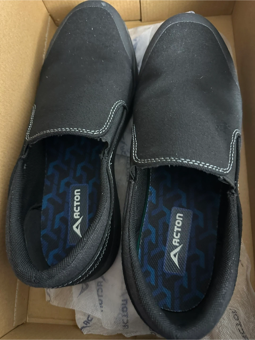 Selling a pair of Acton slip-on work shoes. They're black and in good condition, ready for a new home! Comes with the original box. Original Price CAD $ 109+tax Pickup in Richmond Hill or Concord