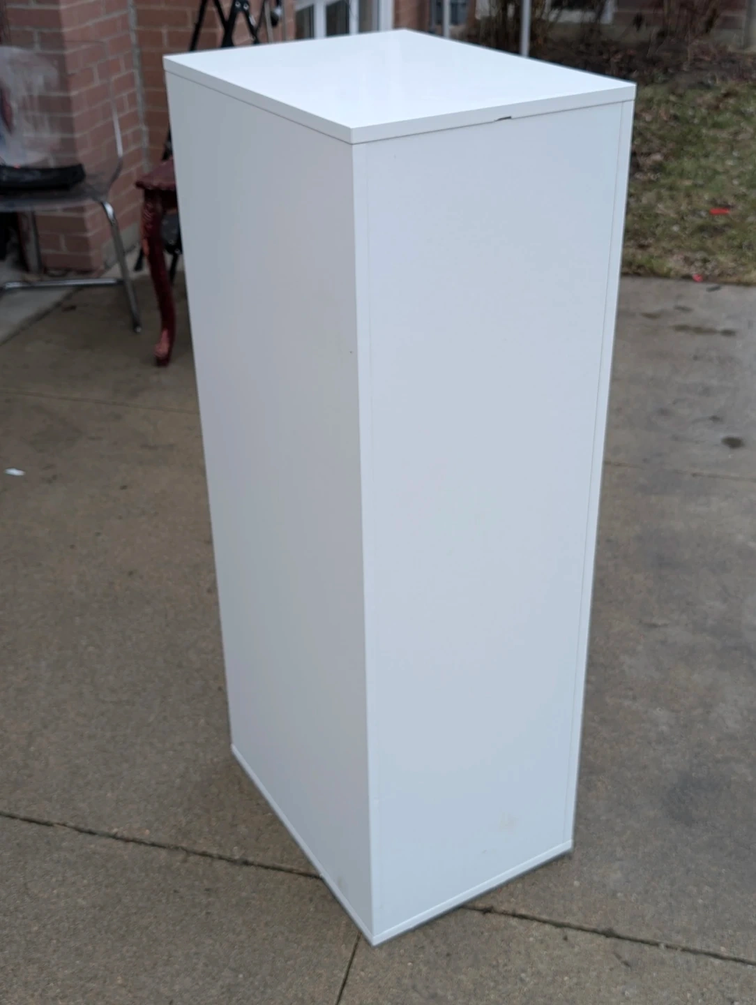 This is a white 9-drawer Alex unit, perfect for organizing art supplies or makeup. It's great for small spaces where you need extra storage. Its clean design fits well in any room.