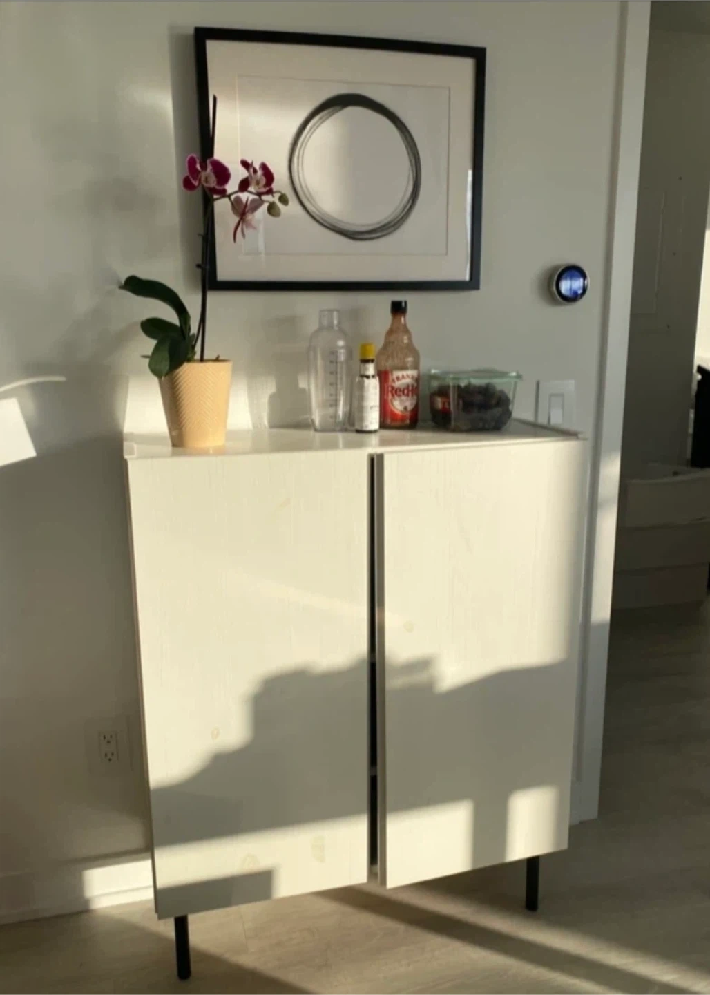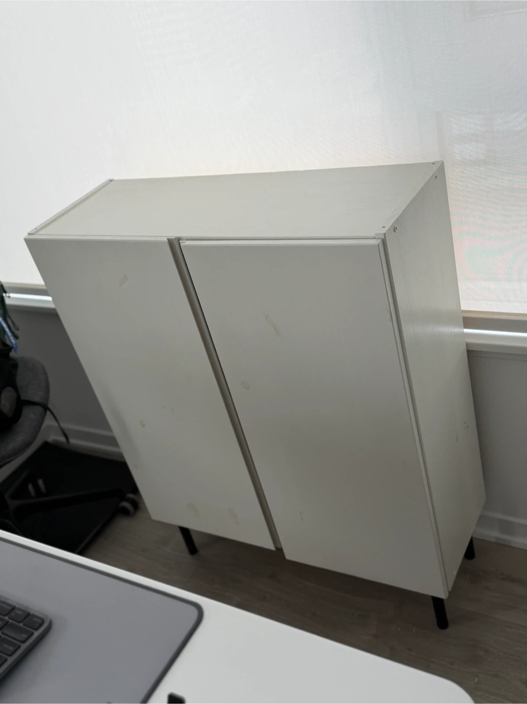 This is ikea ivar cabinet painted in cream. With 4 black legs. It's in a good condition and perfect for extra storage in your home.