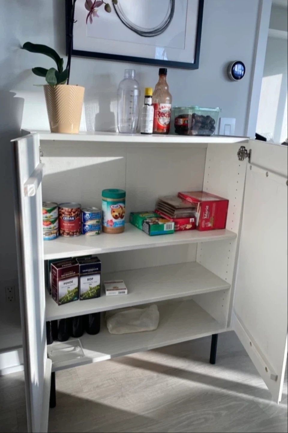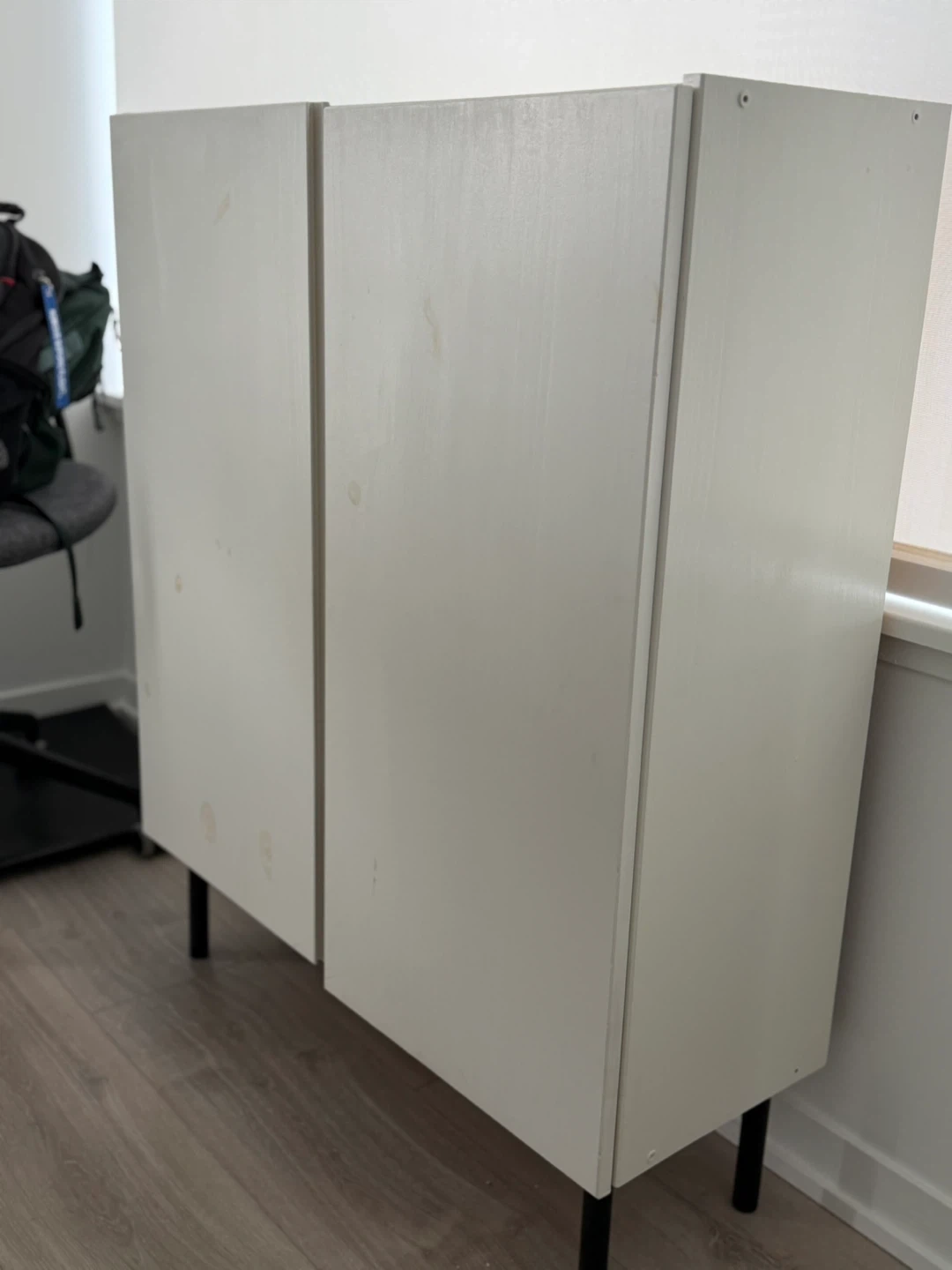 This is ikea ivar cabinet painted in cream. With 4 black legs. It's in a good condition and perfect for extra storage in your home.
