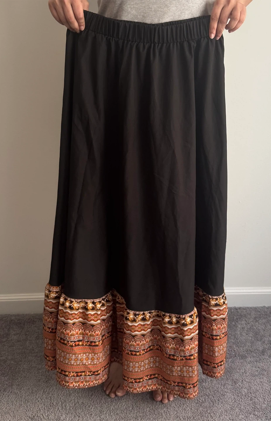 1. Complete black skirt, ankle length, A line cut. US size 6-8