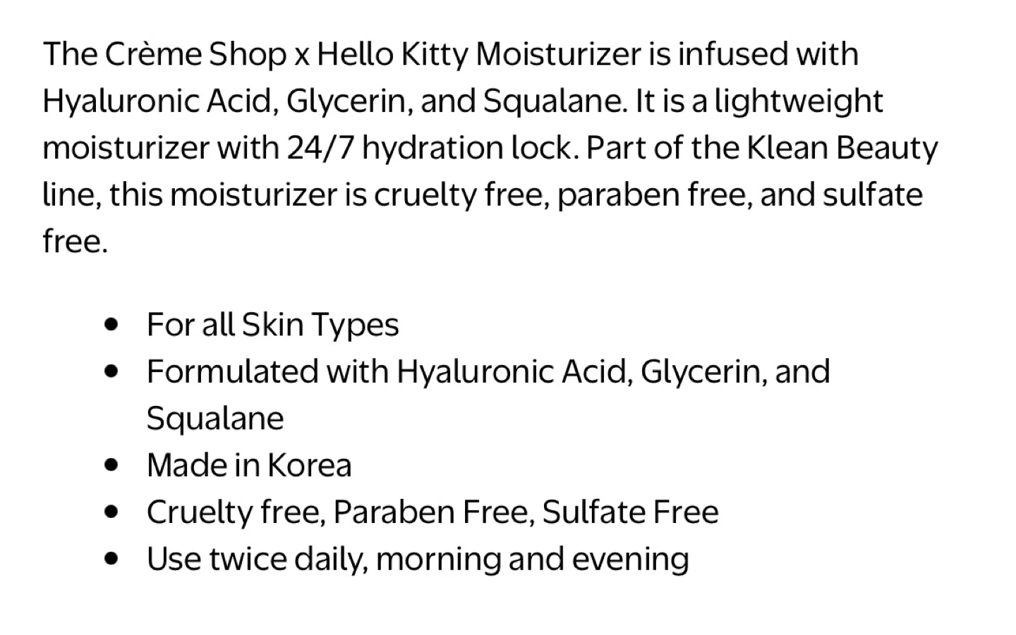 Hello Kitty Hydrating Moisturizer (NEW)
