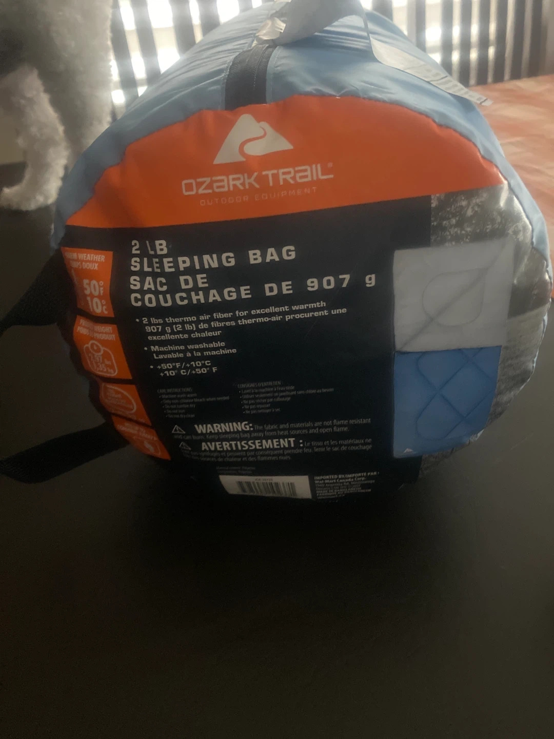 Selling an Ozark Trail 2 LB sleeping bag! It's designed for excellent warmth with 2 lb thermo air fiber. It's machine washable and suitable for temperatures between +10°C/+50°F