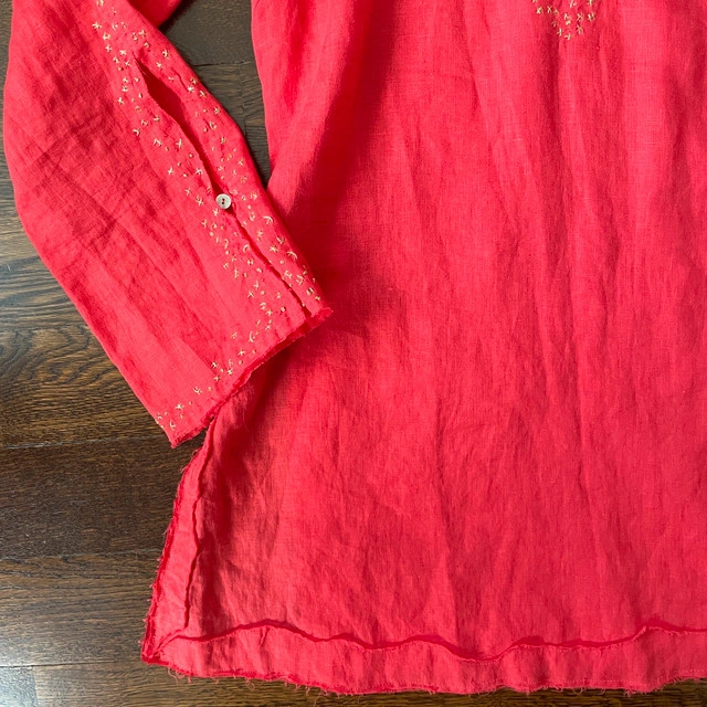Nougat London Coral Linen Tunic- Gold Stitching-Med/Large