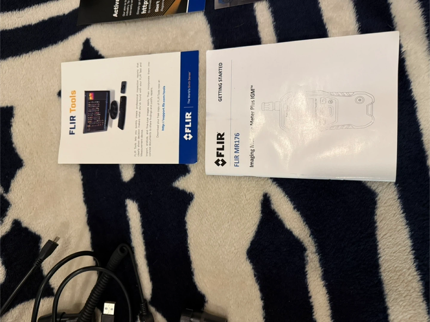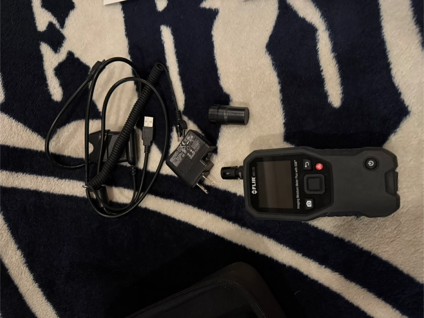 FLIR MR176 Imaging Moisture Meter Plus with IGM. Includes meter, charging cable, power adapter, and carrying case. This device measures moisture and temperature. Used a handful of times well maintained perfect working equipment.