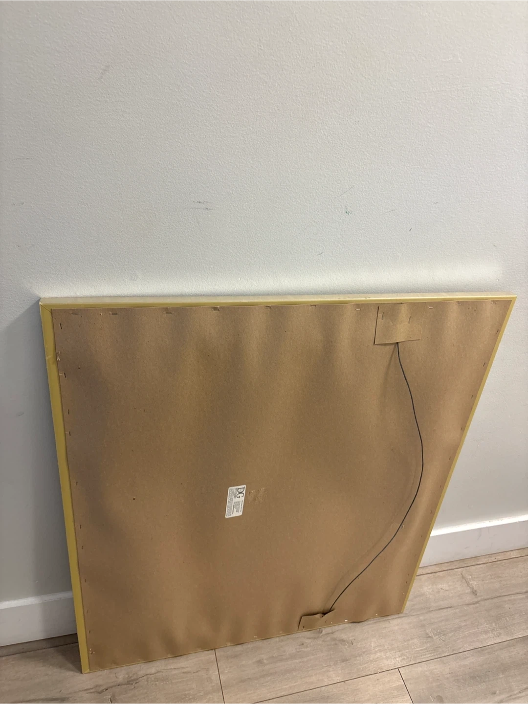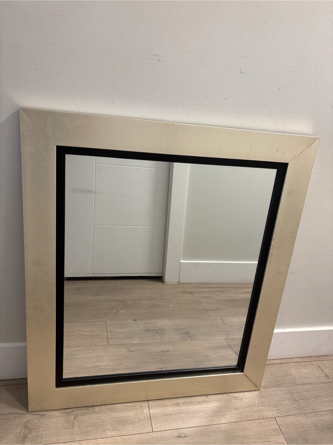 A stylish mirror with a gold-toned frame and a black inner trim. It's perfect for adding a touch of elegance to any room.