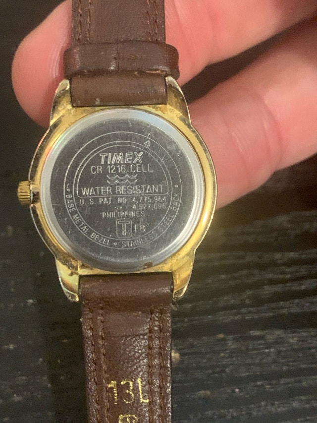 I'm selling a Timex Indiglo watch with a gold-tone case and a brown leather band. It has a classic look and the Indiglo feature lights up the dial for easy reading in the dark. This is a used watch. Brand: Timex, Model: Indiglo, Case Colour: Gold, Band Colour: Brown. This watch has been telling me the time, but maybe you can give it a new wrist to call home! If this ad is still up, it means the watch is still available.