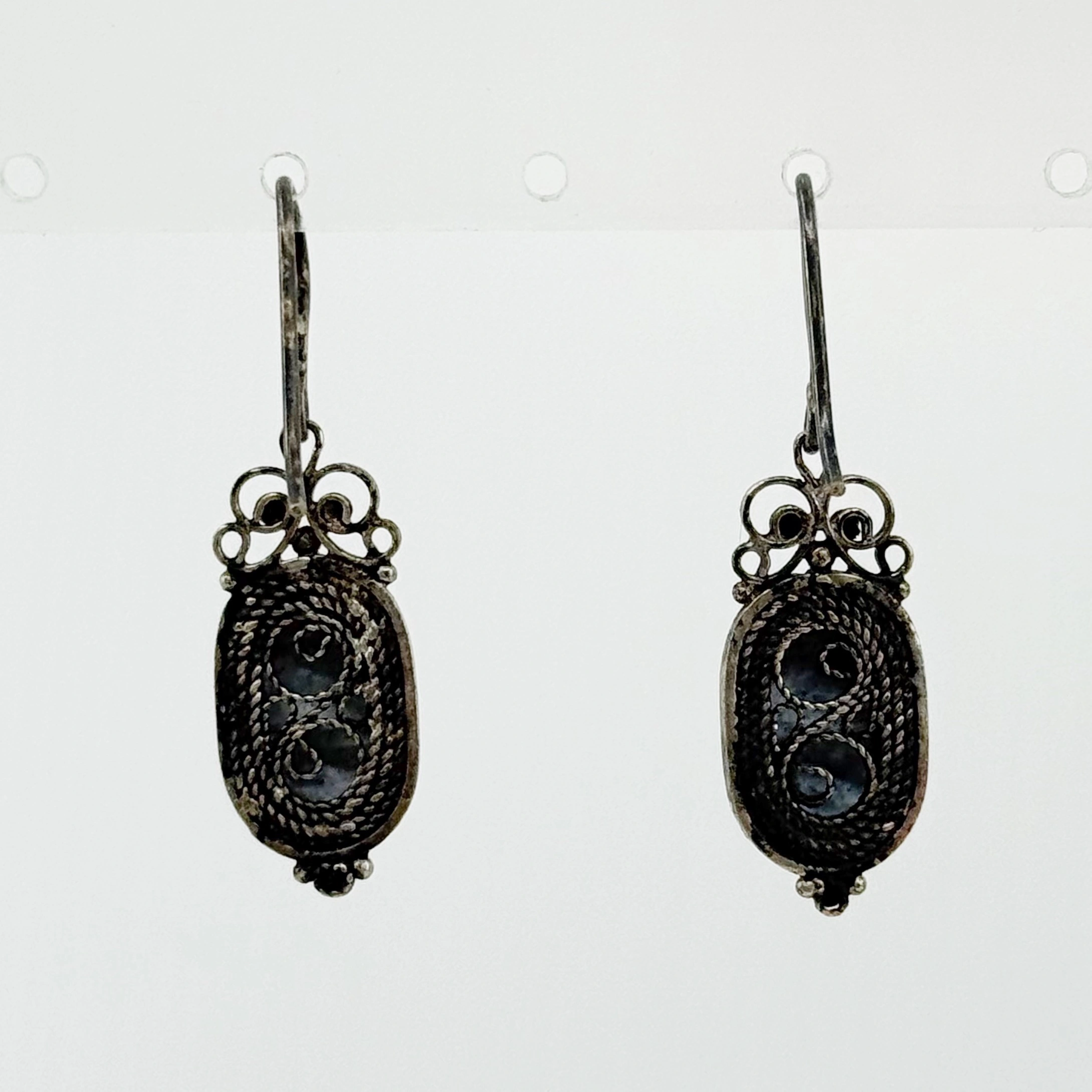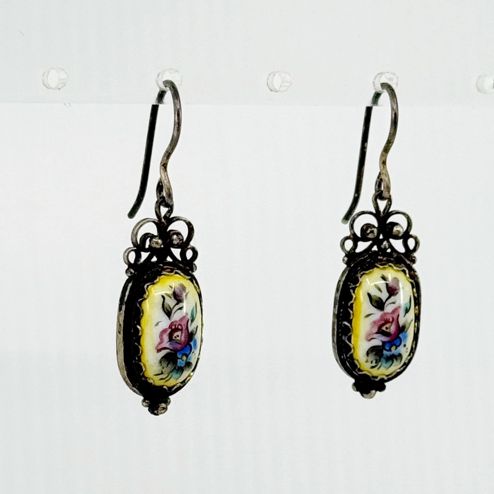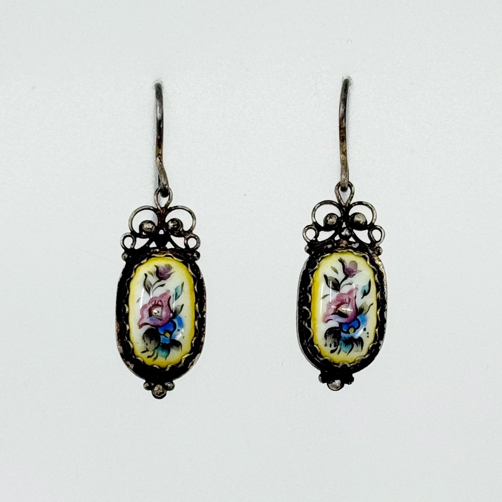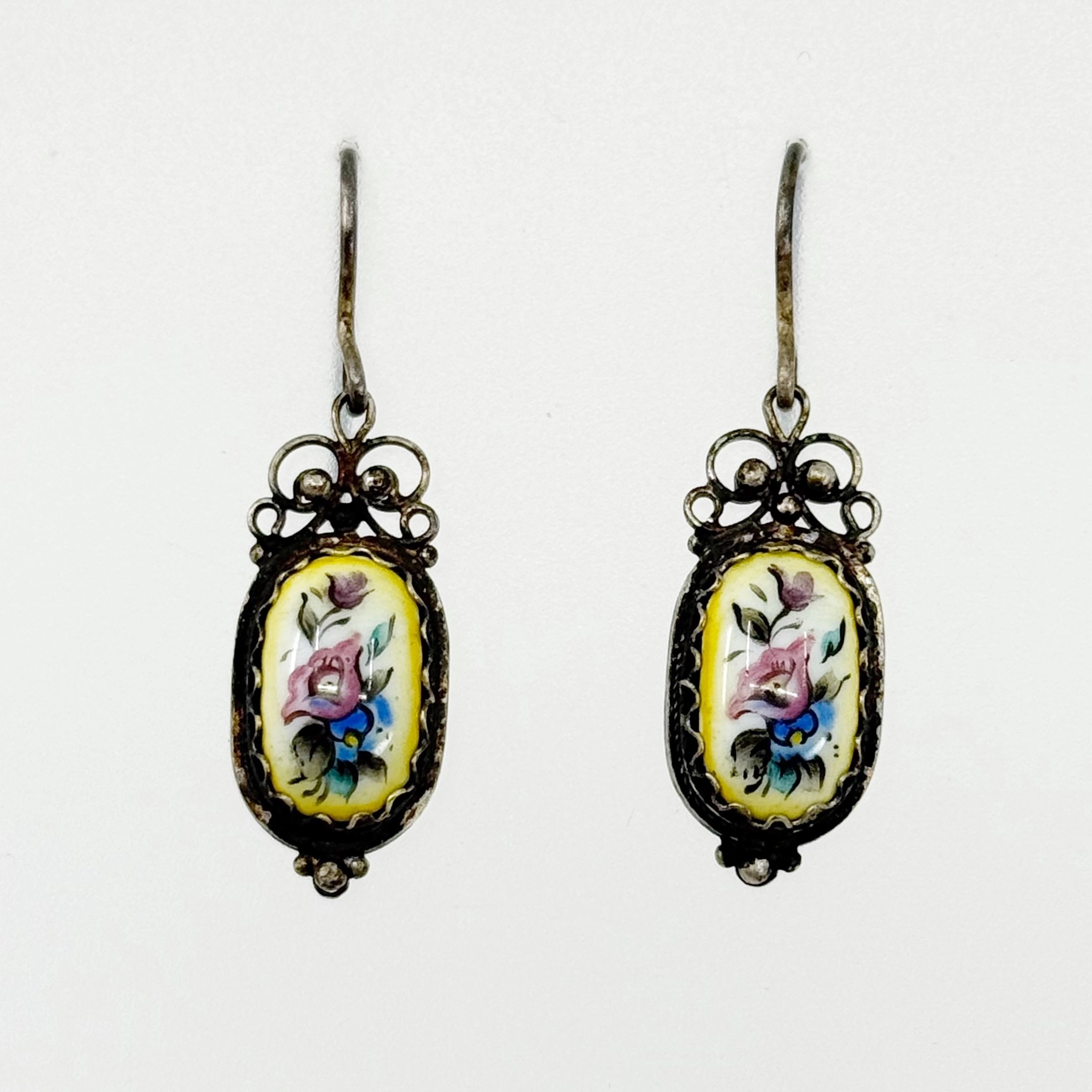 Vintage USSR Russian silver plated Hand Painted enamel earrings