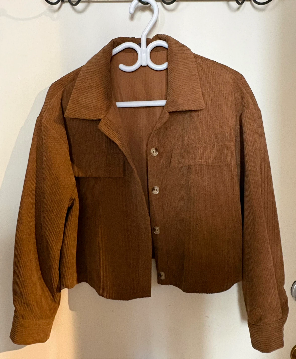 1 / 31 / 3Buy & SellCropped Corduroy Jacket - BrownCropped Corduroy Jacket - Brown$20Brown corduroy jacket with button-front closure and two chest pockets. It's a cropped style with long sleeves. Corduroy material.ConditionLike newSize0XLBrandEmery RoseWHERE TO MEETCheck LocationView MapSELLERverifiedAllieOliver620 reviews0 chats·0 favorites·9 viewsSEND CHAT TO SELLERHi Allie! I’m interested in your listing.Hi Allie! I’m interested in your listing.Get the Karrot app to chatSign In to chat