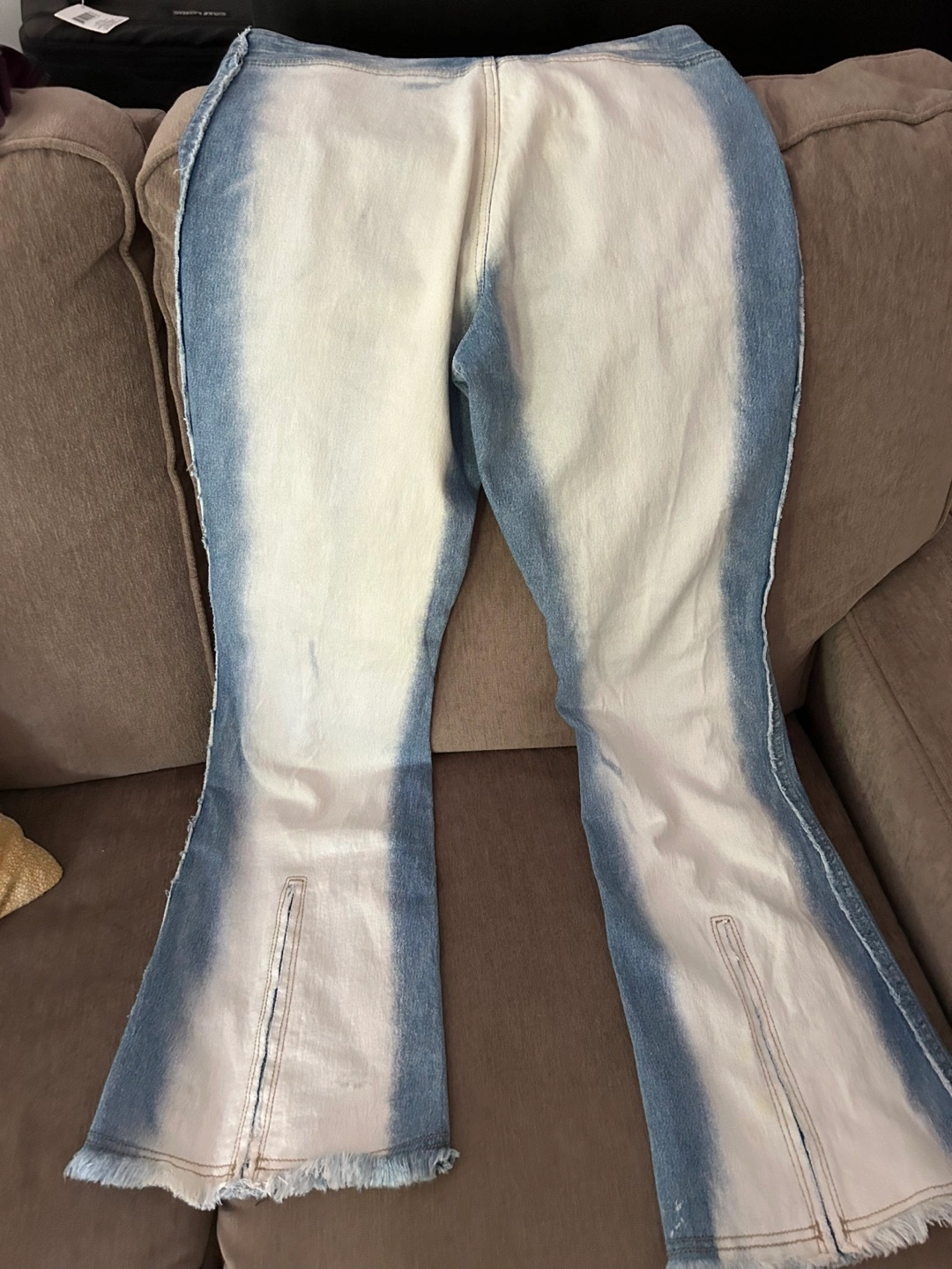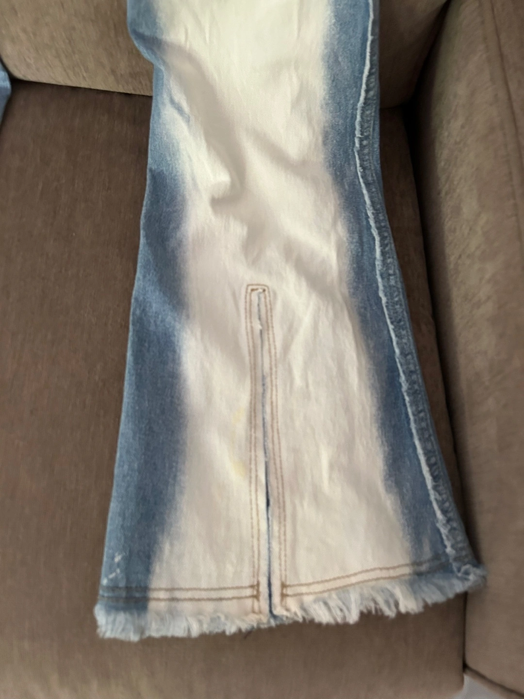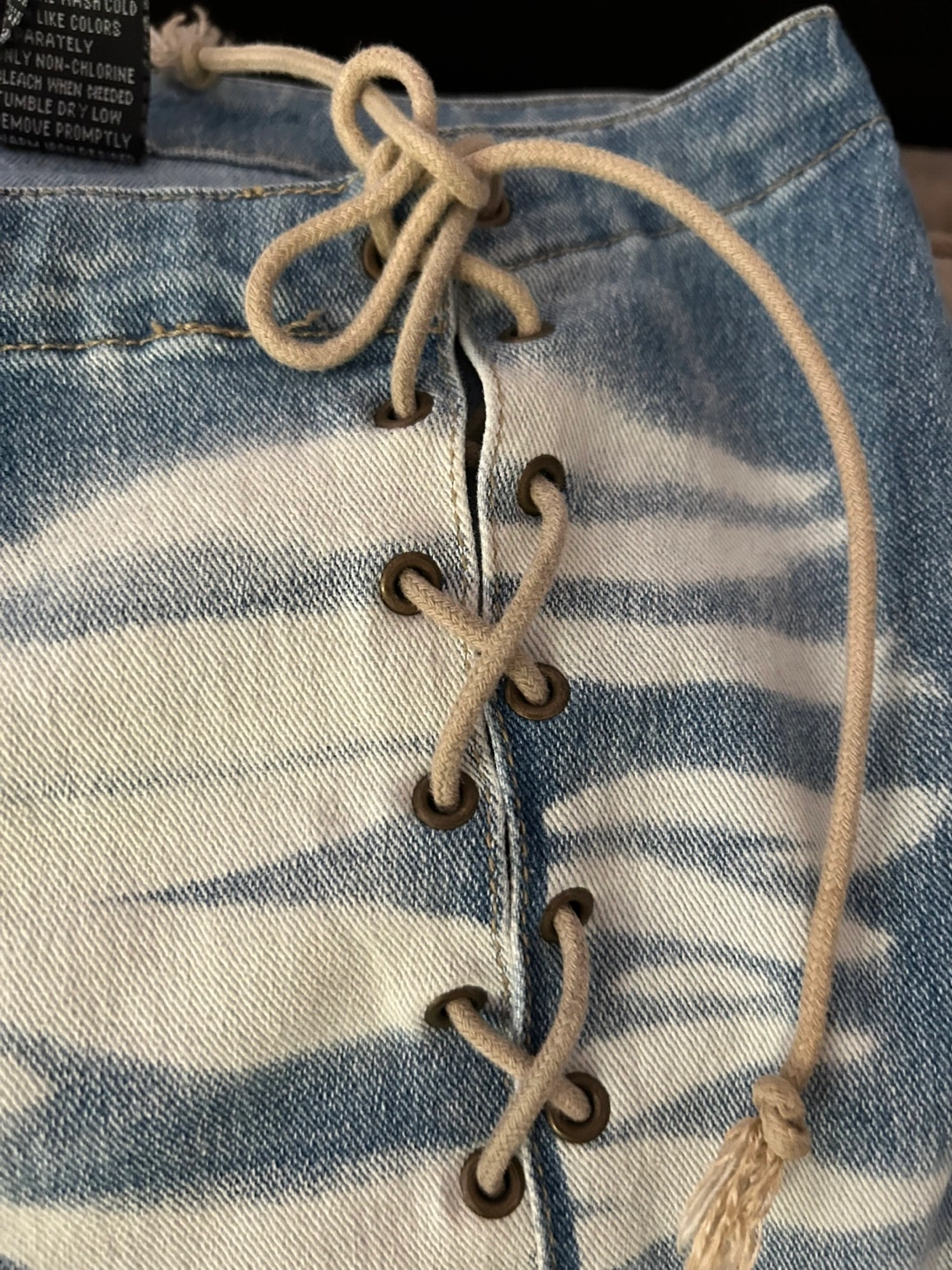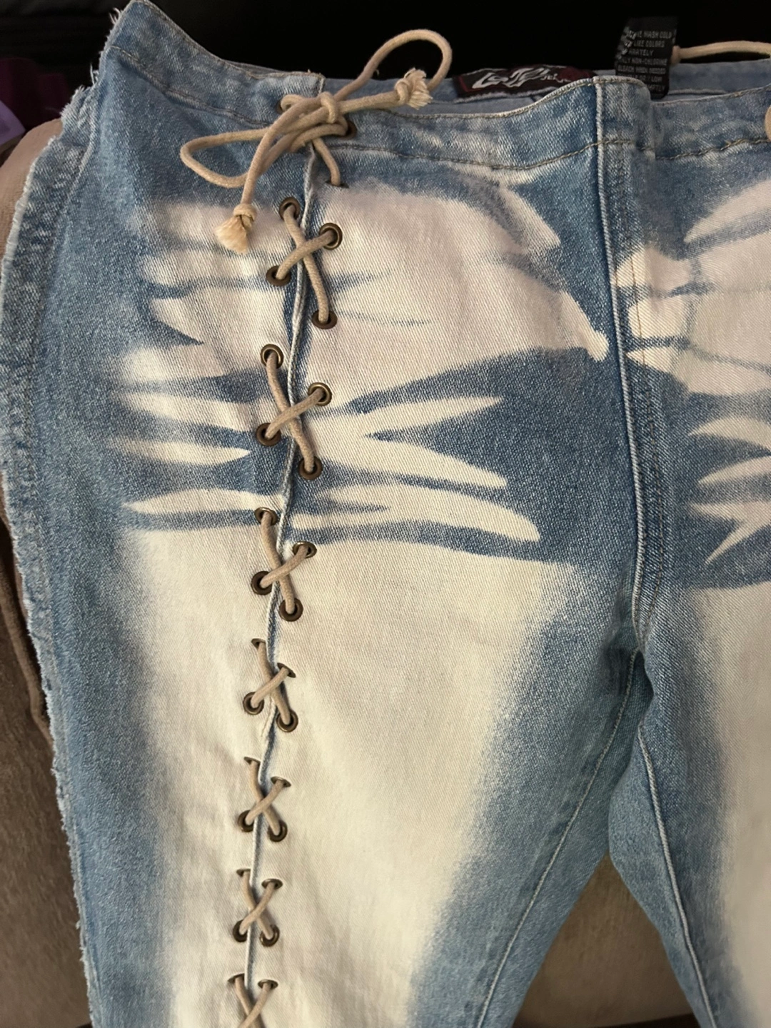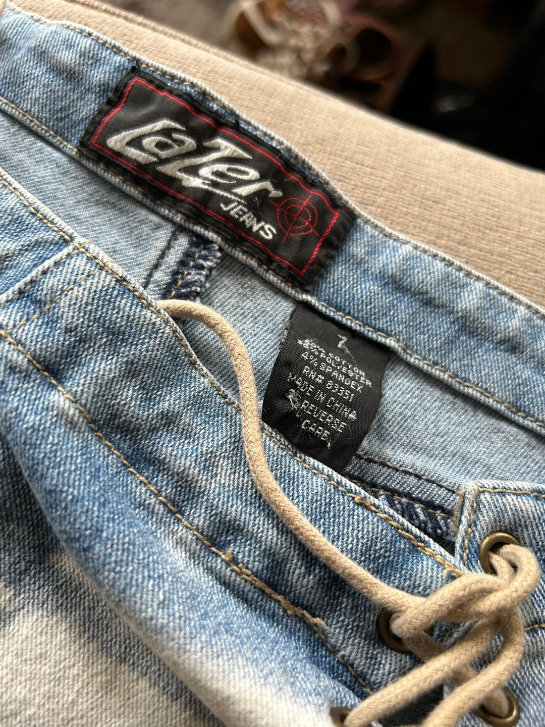 These Lot29 jeans are a unique addition to any wardrobe! The light denim wash with white accents is really eye-catching. They're a size 7 and made of 60% cotton, 36% polyester, and 4% spandex, making them comfy and stretchy