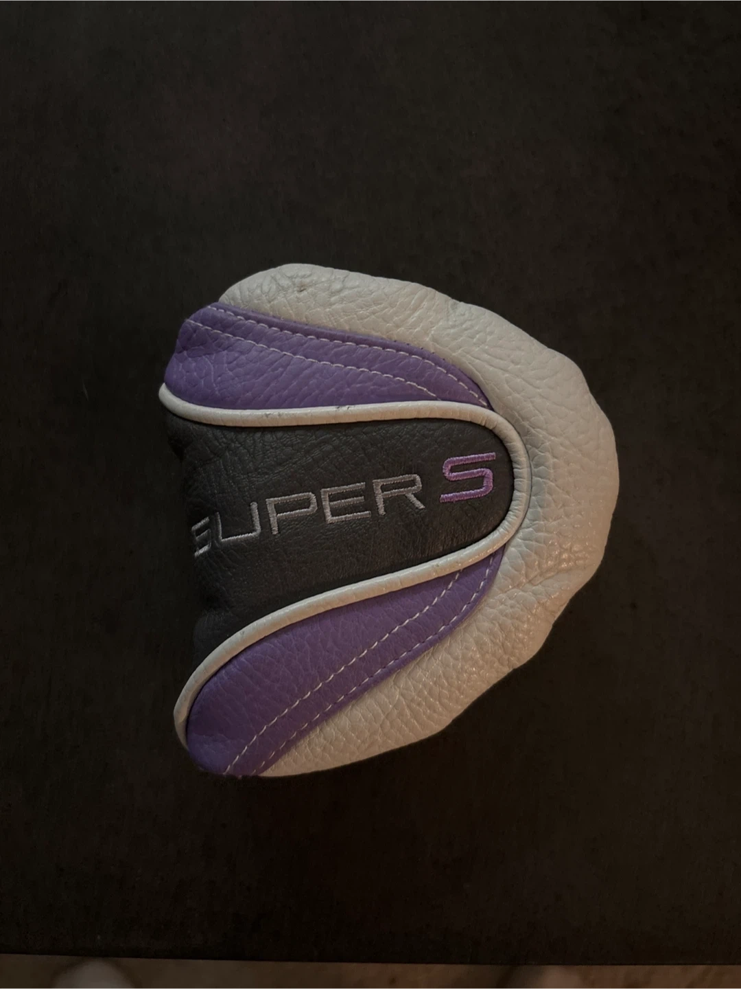 Selling an Adams Golf Super S putter headcover. It's in great condition and ready to protect your putter! The cover is a stylish mix of white, grey, and purple.