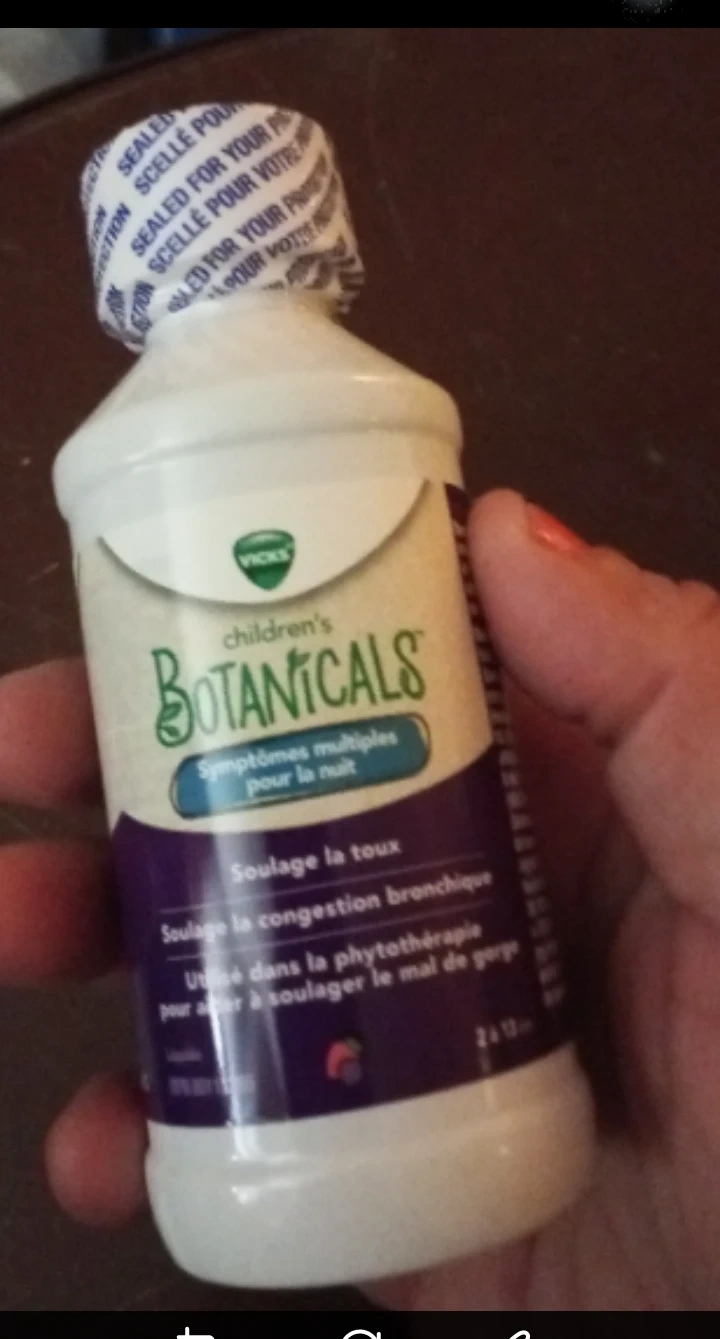 Vicks Children's Botanicals syrup for nighttime cough and bronchial congestion relief.