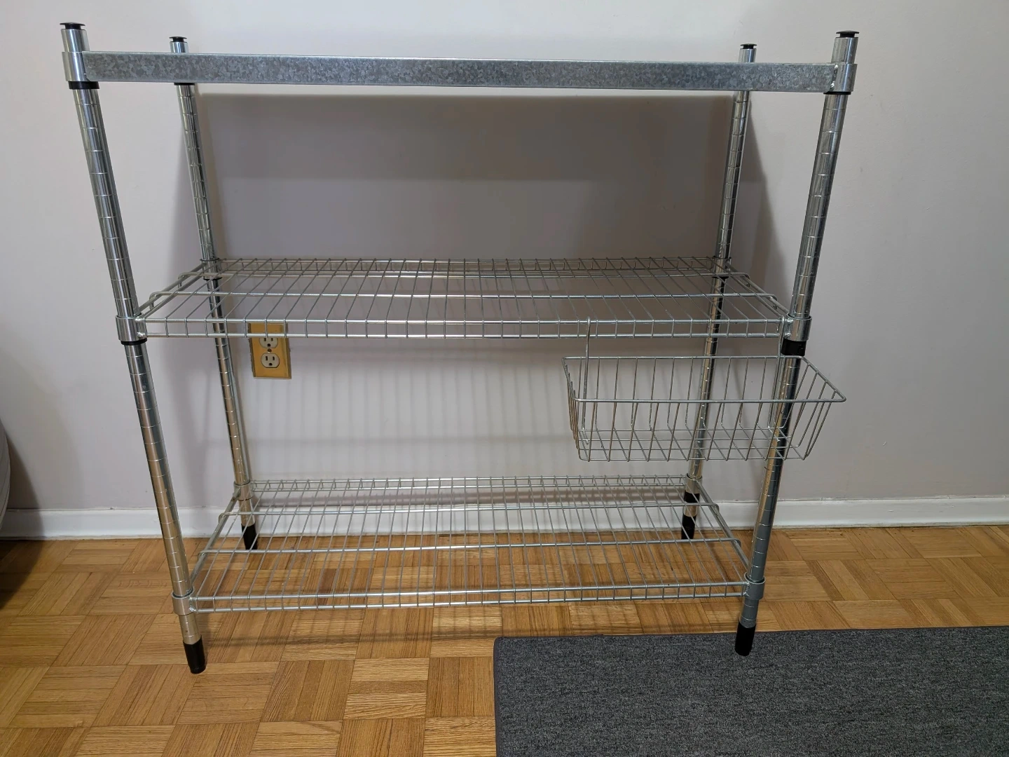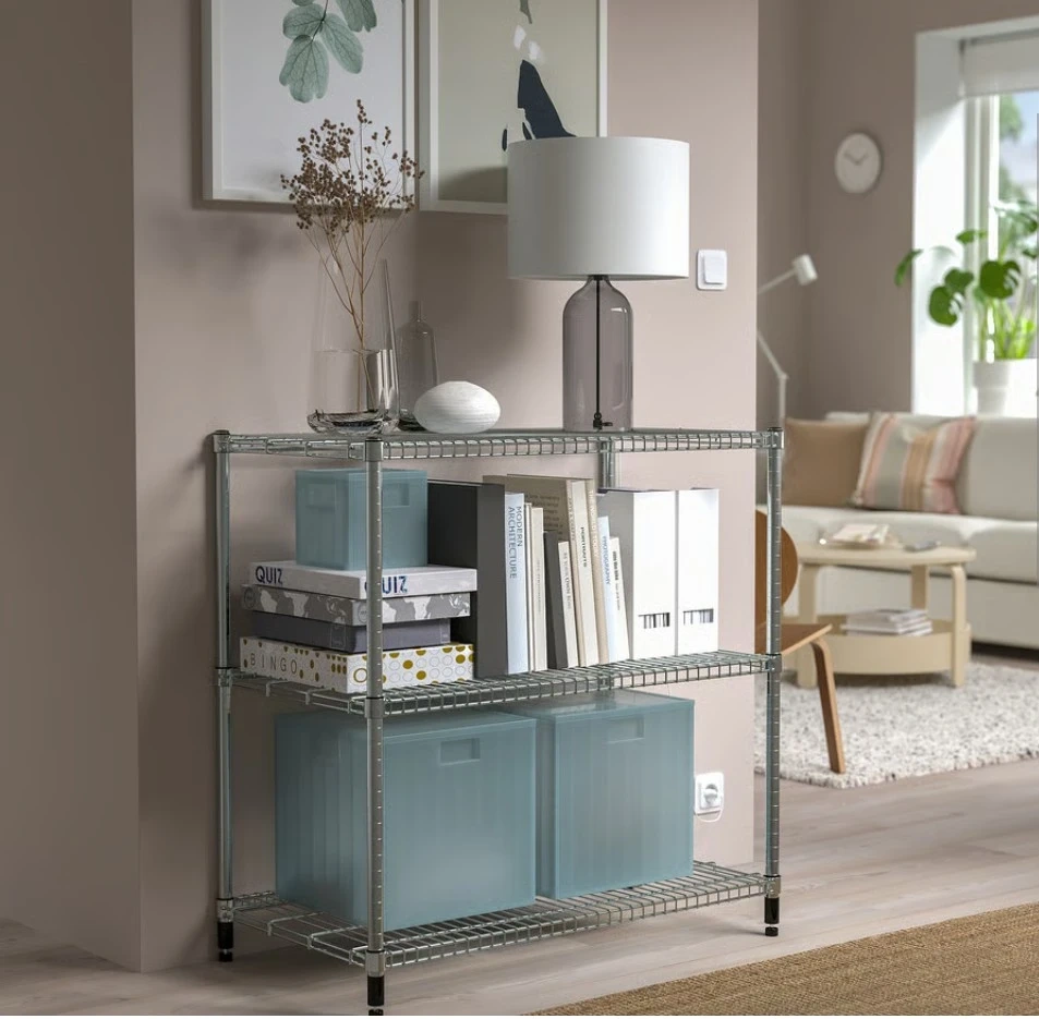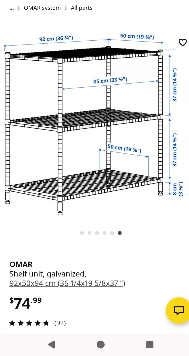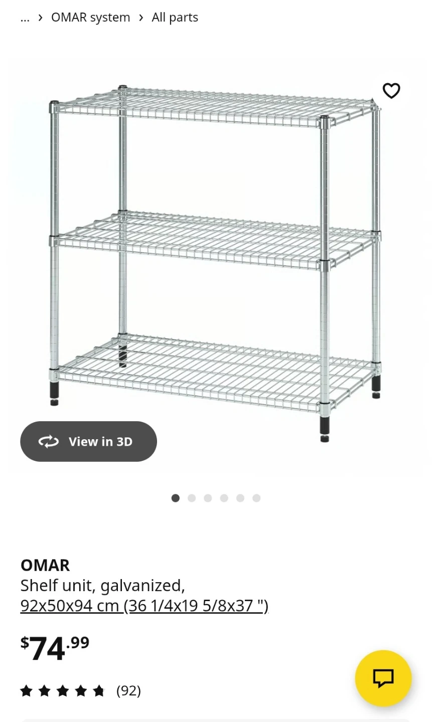 This is an IKEA OMAR shelving unit with a galvanized finish. It measures 92x50x94 cm. Includes a wire basket accessory. I have another shelving exactly the same like new.
