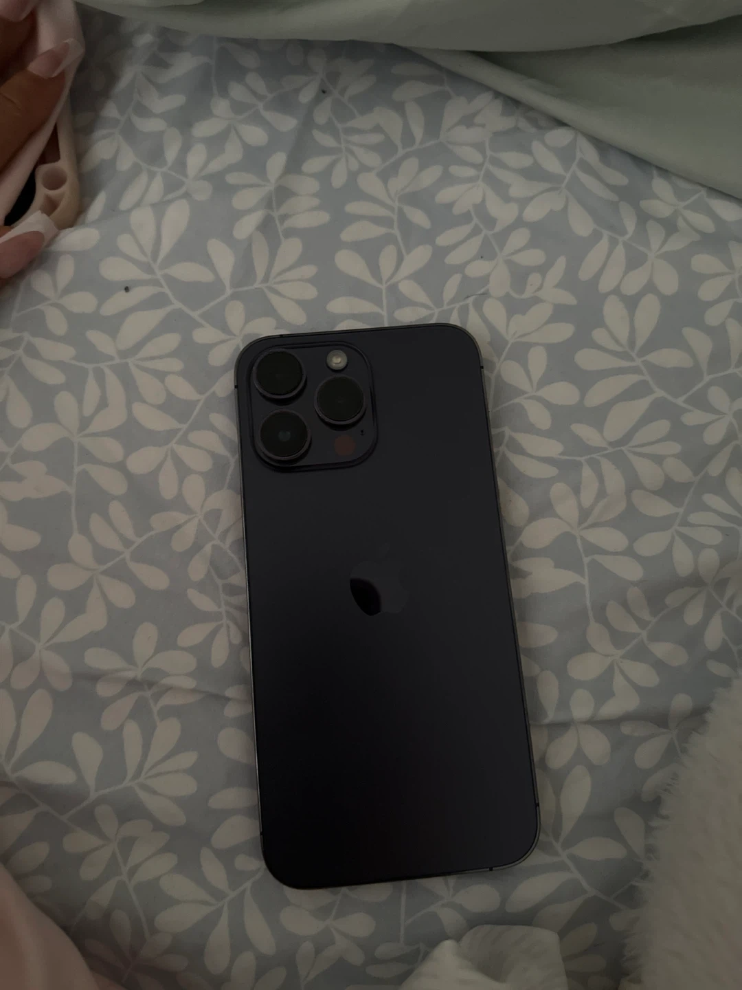 Selling my iPhone 14 Pro Max in purple. There's an unnoticeable small crack on the screen, but it's otherwise in great condition. Replaced for new model so decided to sell my old one