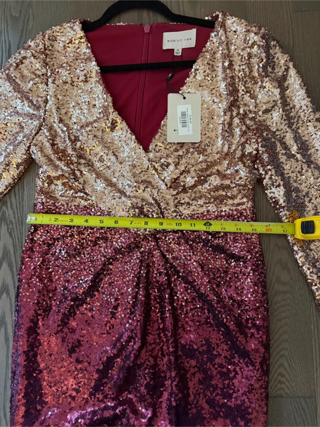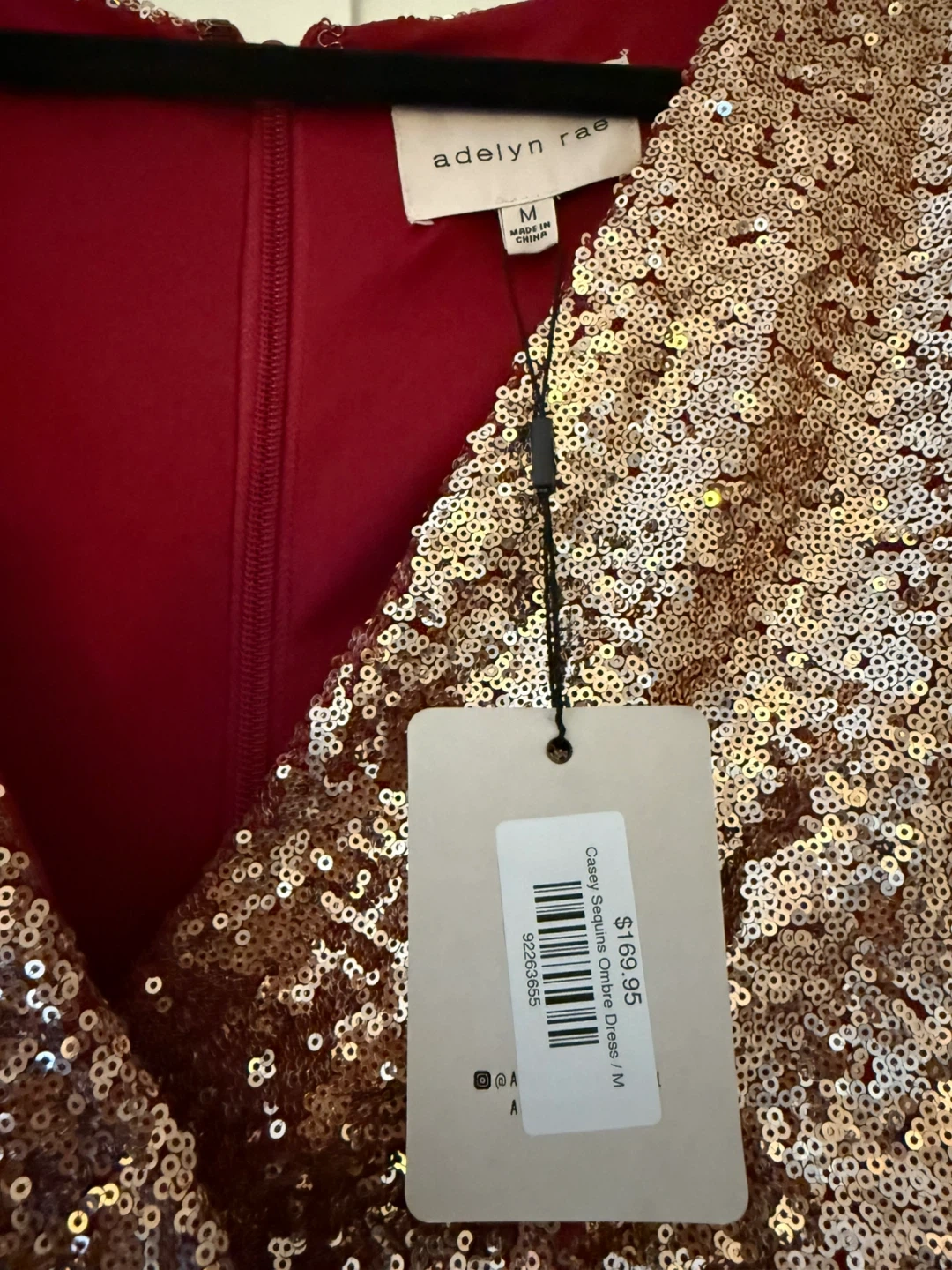 Selling a stunning Adelyn Rae Casey Sequin Ombre Dress in size M! This dress features beautiful sequins in an ombre pattern, shifting from gold to burgundy. Originally bought for $169.95. It's perfect for a special occasion or a night out. NWT, never worn.