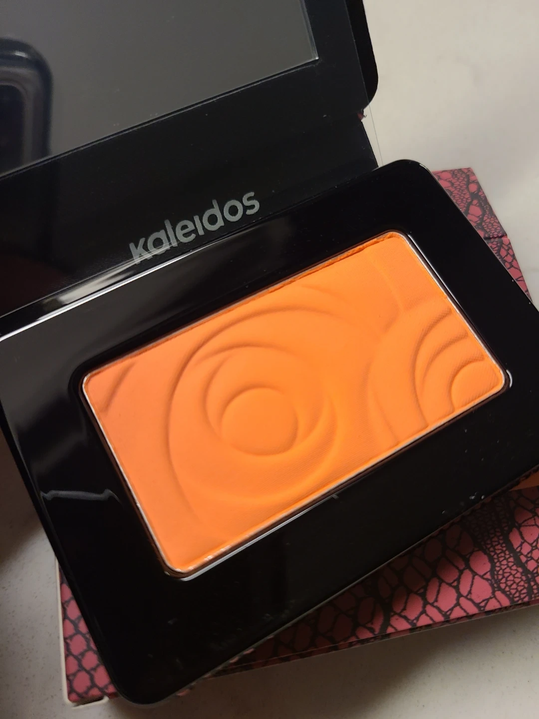 Kaleidos mono blush in the shade Sunburnt. It's a featherlight pressed powder blush for blendable, long-lasting coverage. Exceptionally smooth and fine, this rose embossed blush delivers a soft-matte flush. This blush is great for achieving a vibrant pop of colour!