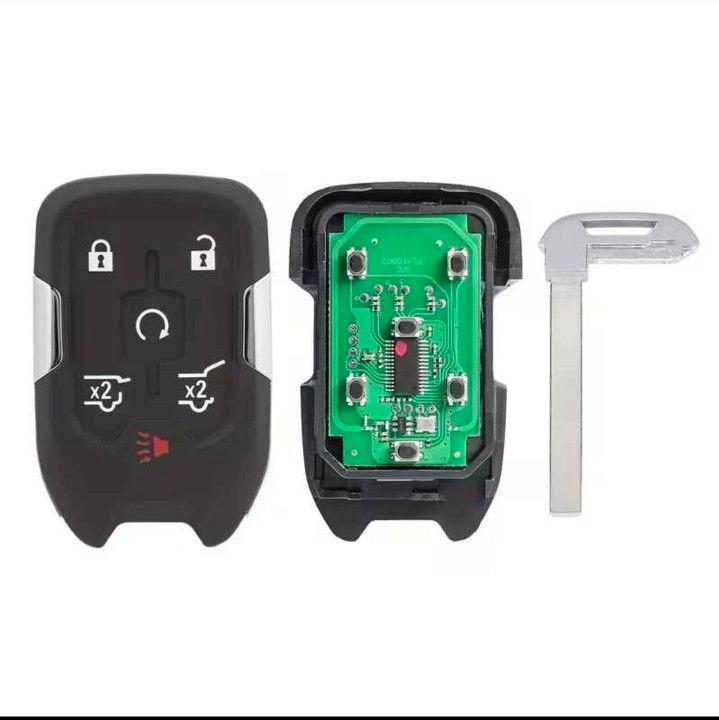 6-button SMART Remote key fob for Chevrolet & GMC vehicles with push to start ignition.