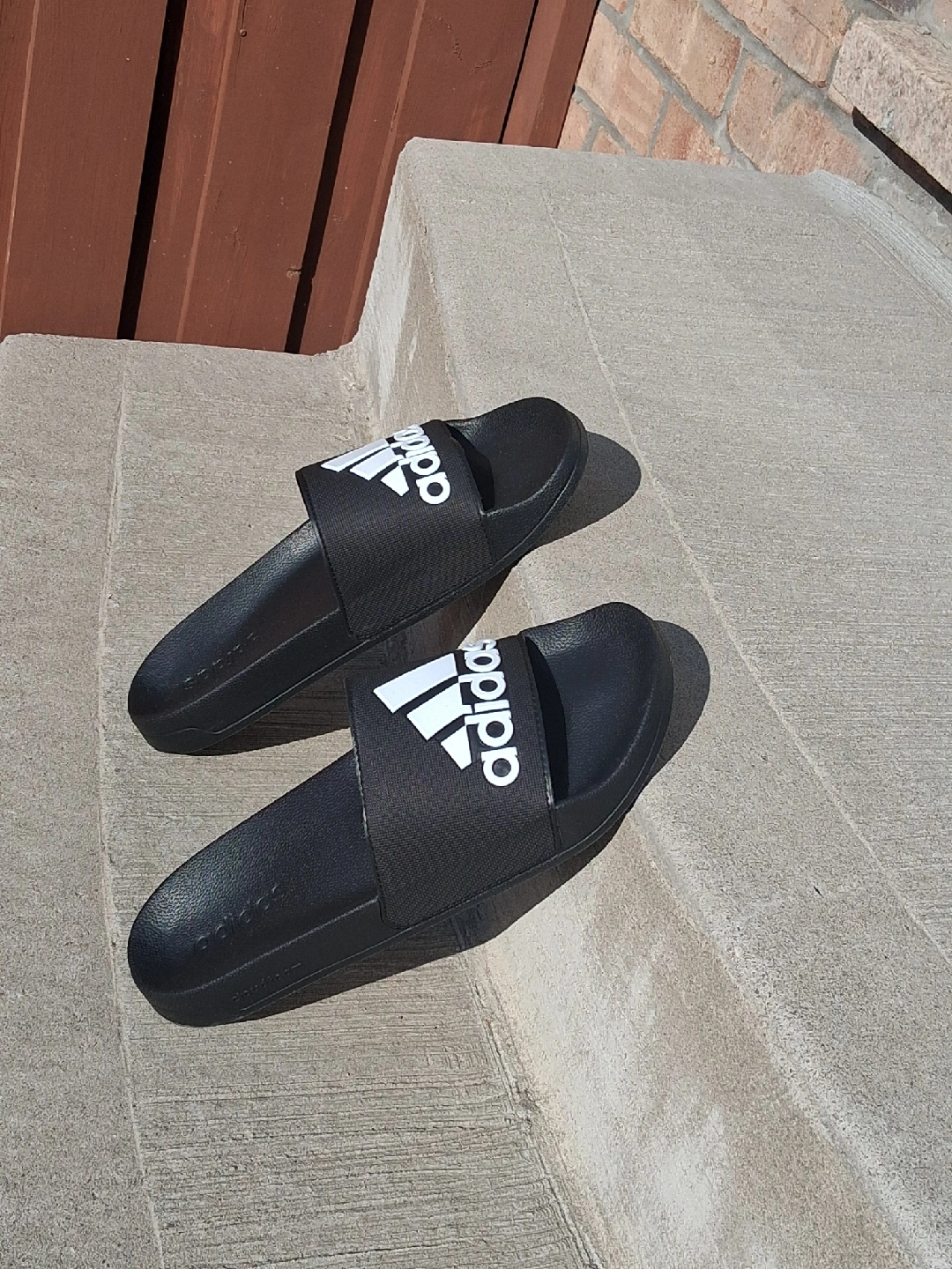 Brand New Unisex pair of Adidas Adilette Comfort Slides in black! They're super comfy and perfect for everyday wear. These slides feature the classic Adidas logo and a contoured footbed for extra comfort