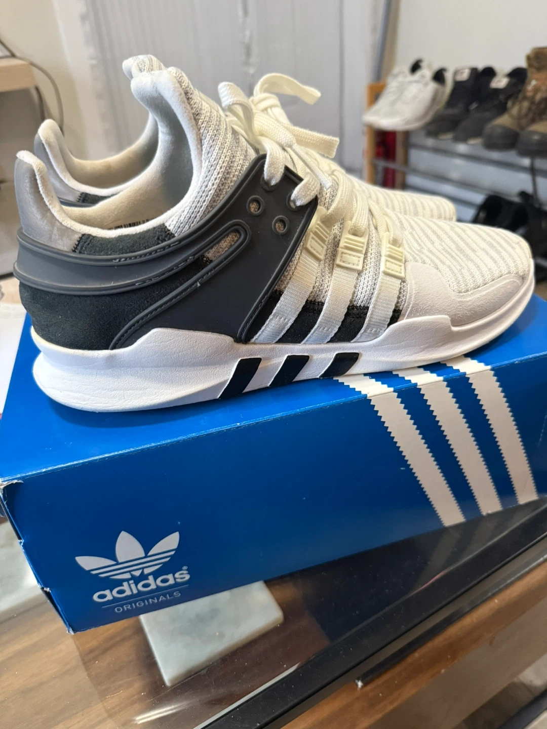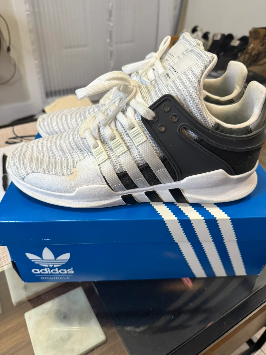 10Selling a pair of Adidas EQT Support ADV sneakers. They are in great condition and come with the original box! The shoes feature the classic Adidas three-stripe design and 'EQT' branding. A stylish and comfortable choice for everyday wear!