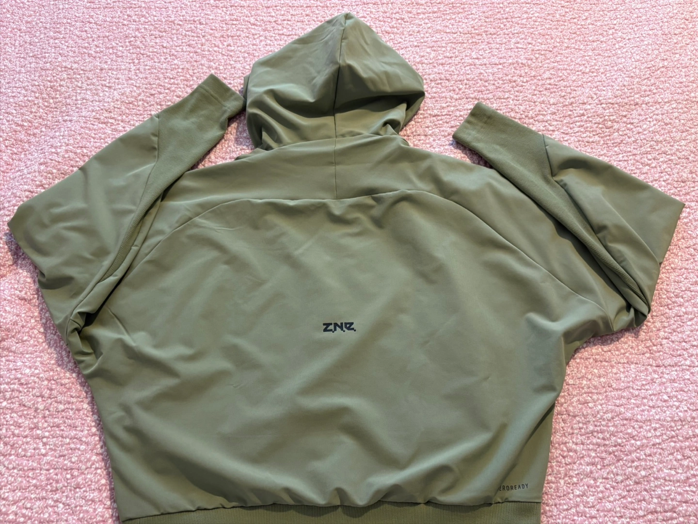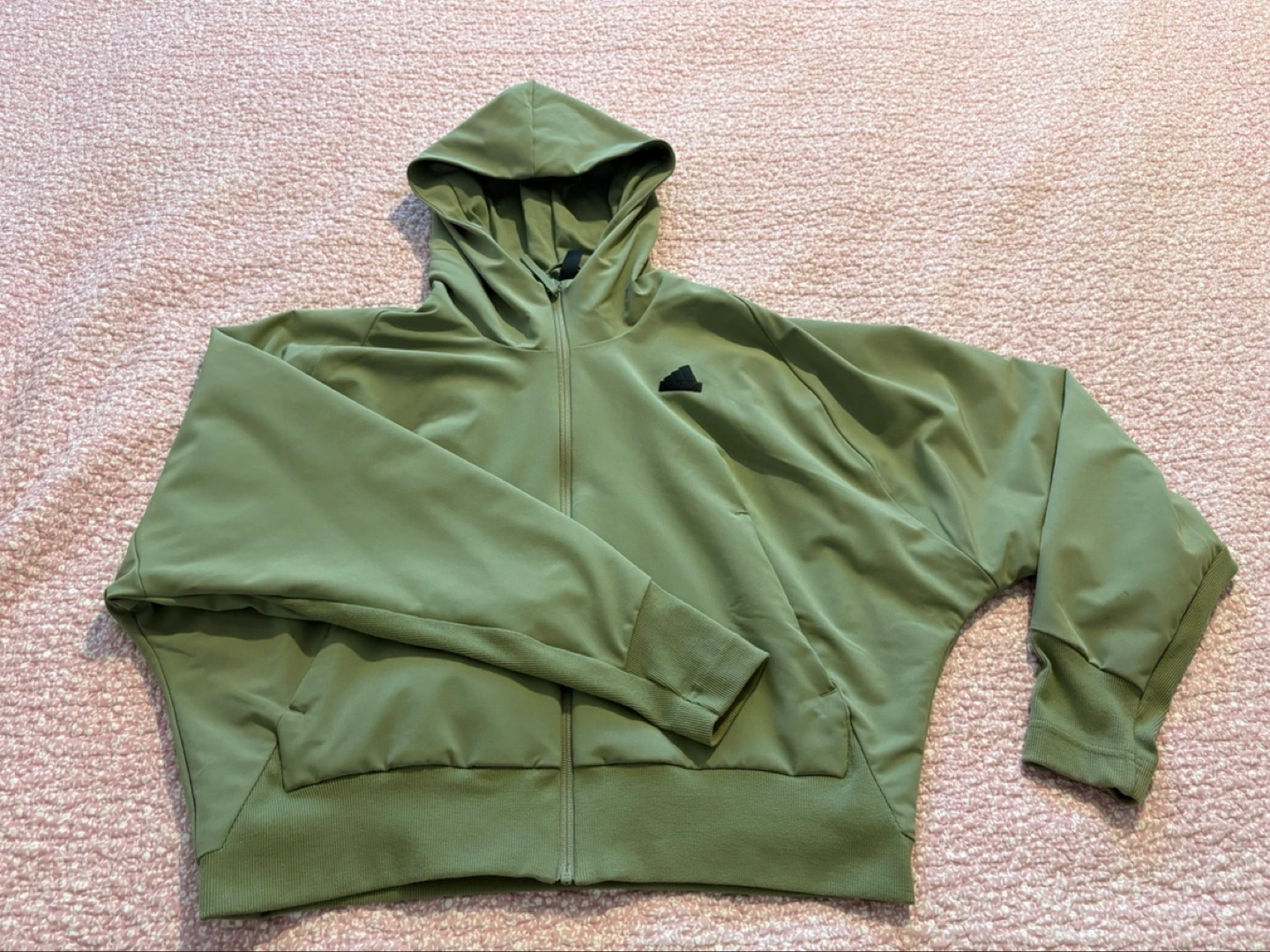 Adidas full zip hoodie in a stylish olive green colour. It's in great condition and ready for a new home! Perfect for layering or wearing on its own, this hoodie is both comfortable and fashionable. The full zip design adds versatility, and the hood provides extra warmth when you need it. A great addition to any wardrobe!