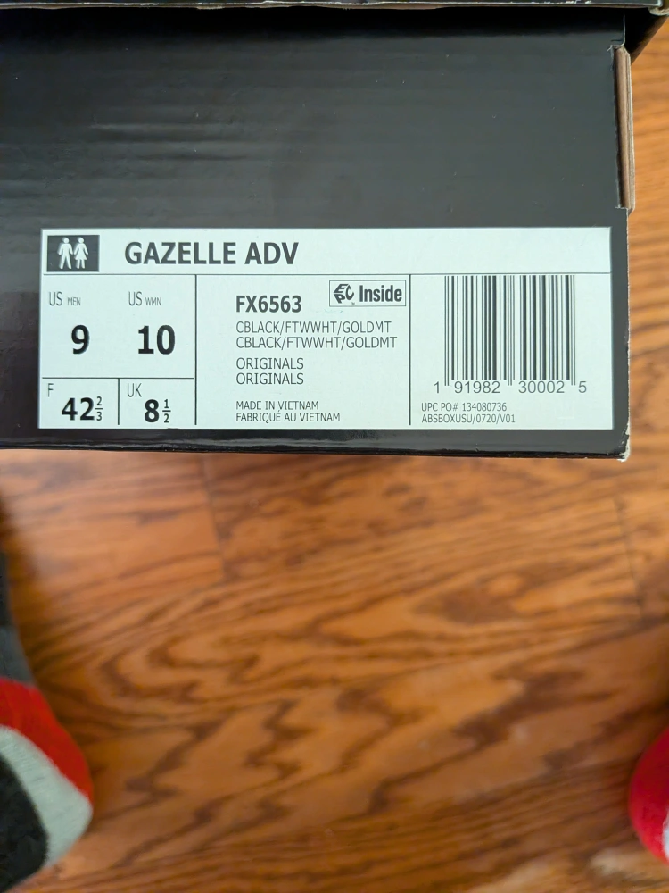 65Selling a pair of Adidas Gazelle ADV sneakers in black and white! They are a US men's size 9. The box is included! brand new womens size 10