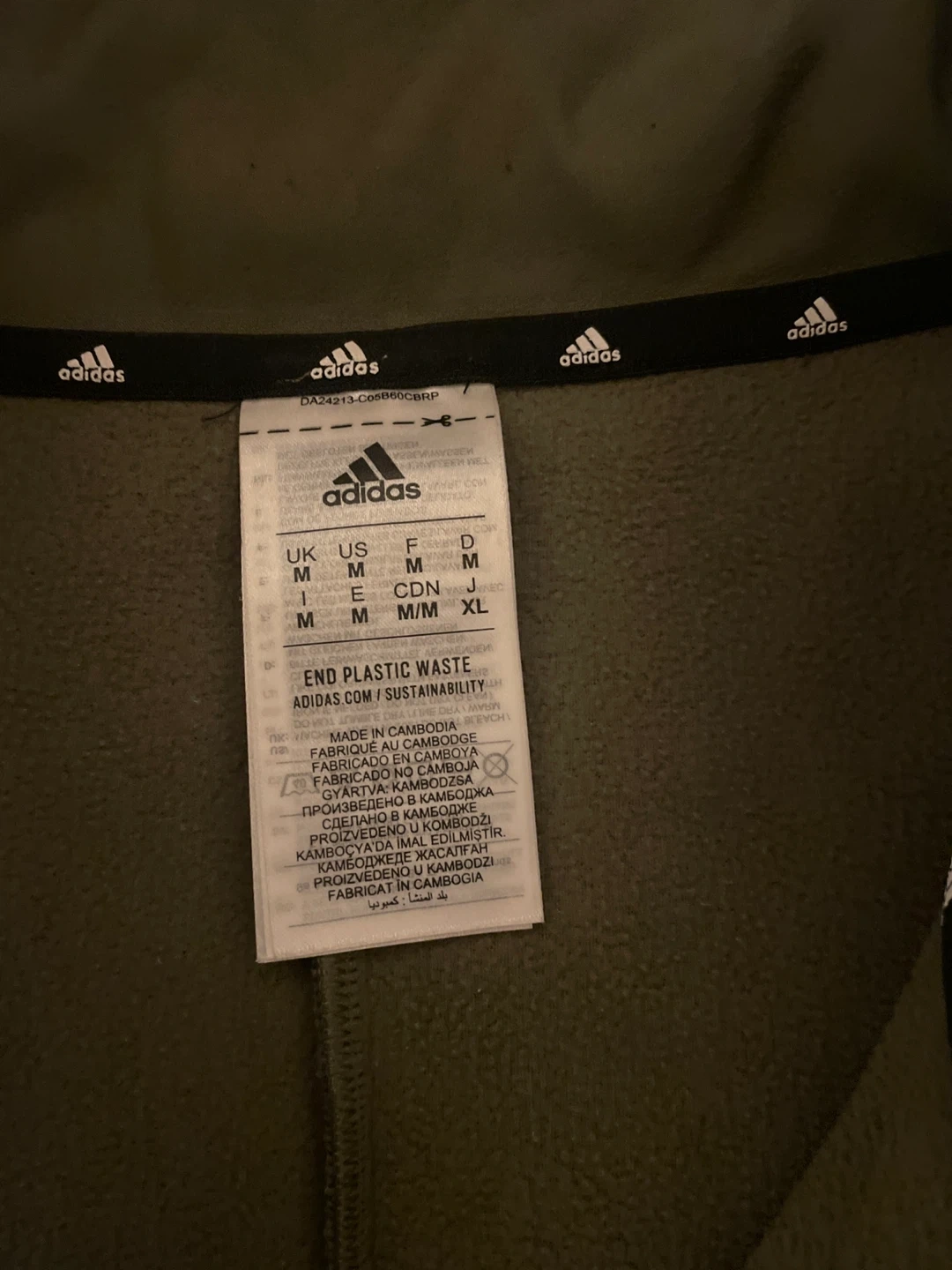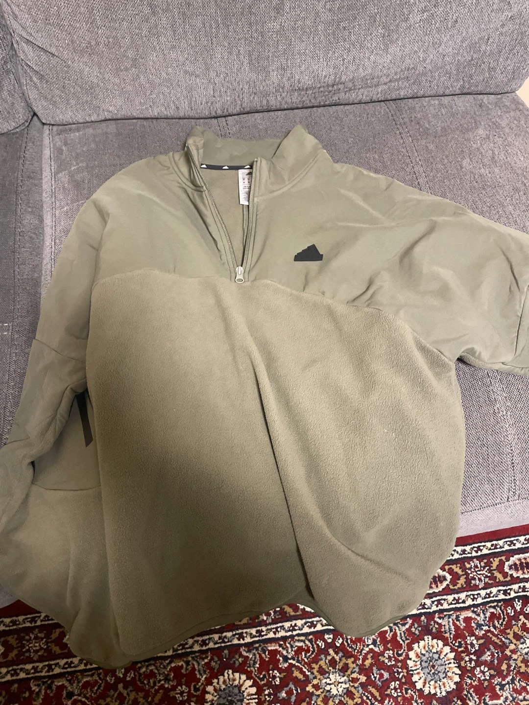 15Adidas half-zip fleece pullover in size M. This comfy pullover is perfect for layering on cooler days. It's in great condition and ready for a new home!