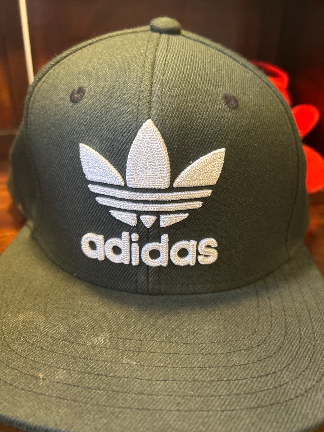 Selling an Adidas baseball cap in olive green. It features the classic Adidas logo embroidered in white. A stylish and comfortable accessory to complete your casual look!