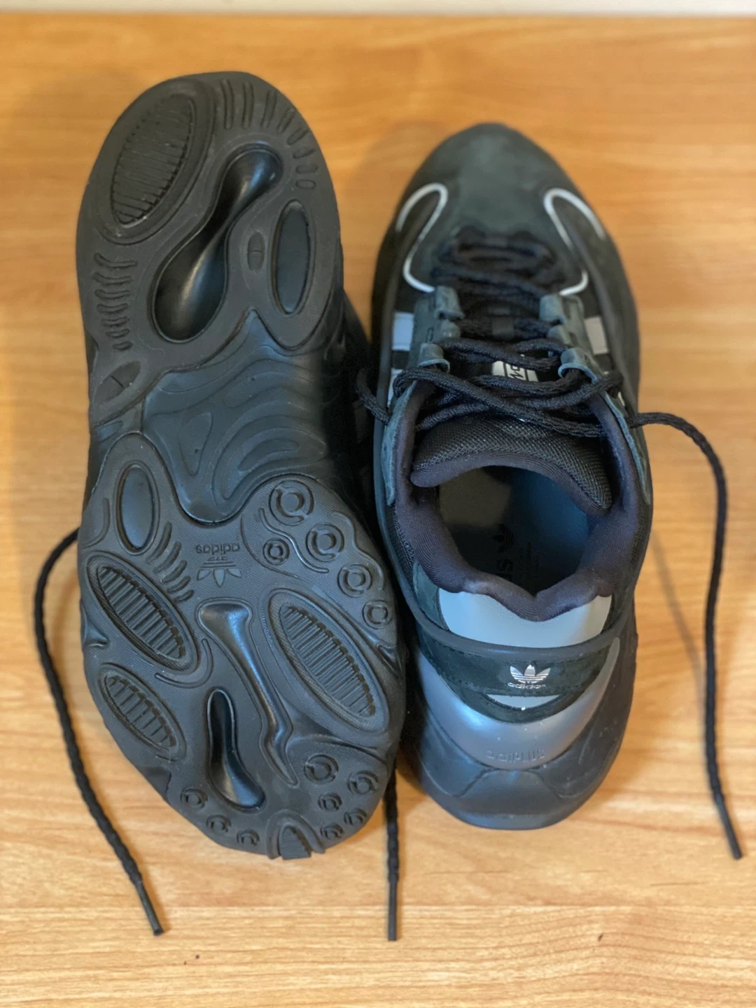 18Model: Adidas OZNOVA Colorway: Black & olive green (dark/olive tones) Condition: Gently used — worn only 2-3 times. Very minimal wear; soles still good, no major damage. Size: 7 US / 5 1/2 UK / 38 EU Materials & Features: Textile / elastane upper, cushioned with Adiplus (or the relevant cushioning tech), rubber outsole. Bold / fluid design typical of the OZNOVA line. Original Retail Price: ~ CAD $170 (on Adidas Canada site)