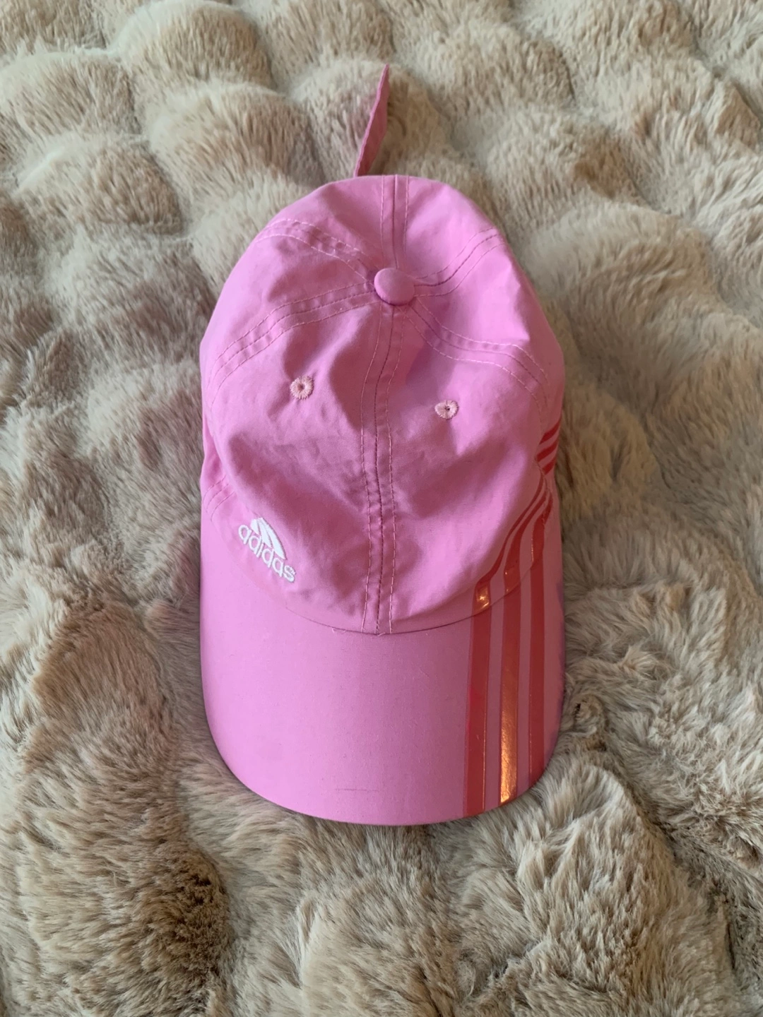 A cute pink Adidas baseball cap! It's in great condition and ready for a new home. Perfect for sunny days or adding a sporty touch to your outfit