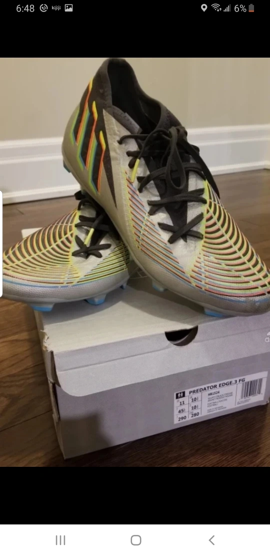 Selling a pair of Adidas Predator Edge.3 FG soccer cleats. They come in size 11. The box is included! worn only a few times.. in new condition.